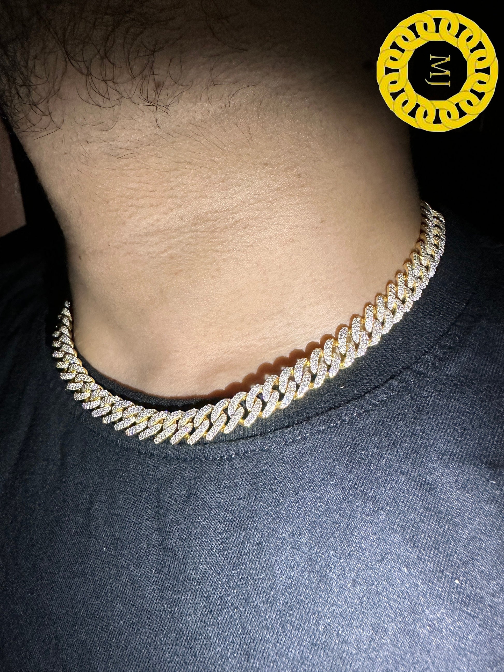 Heavy Solid 925 Sterling Silver Men's VVS1 Moissanite Diamonds Miami Cuban Curb Chain Anti-Tarnish 10 mm wide 16"-28" Inch" All Sizes ( Available Message For Size And MM sizes Price will Vary ) Fine Quality Box Lock Clasp, Moissanite studed Pass The Diamond Tester Test