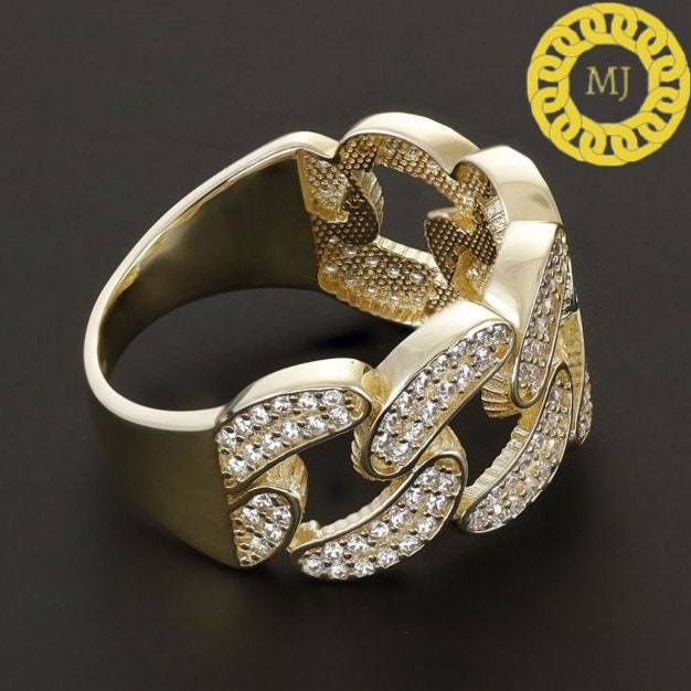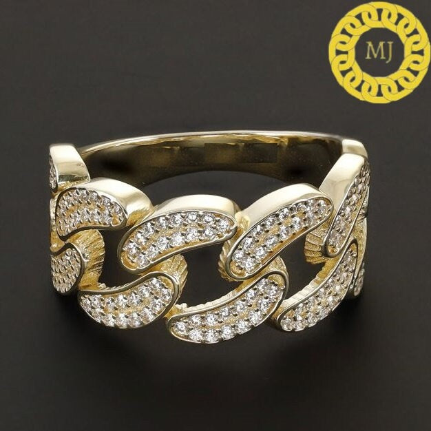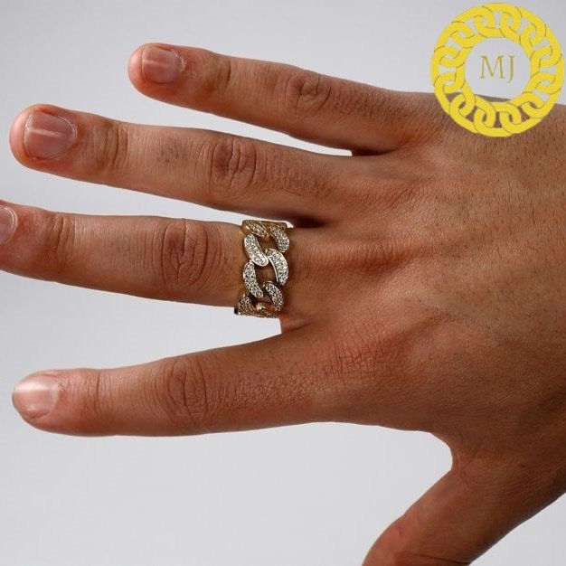 Moissanite Diamond Cuban link Ring, 925 Solid Silver Pave Cuban Ring Best Selling, Sale, Men's, Women's, Unisex Ring,iced Hiphop Cuban band