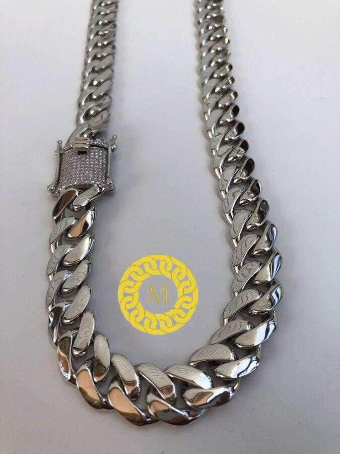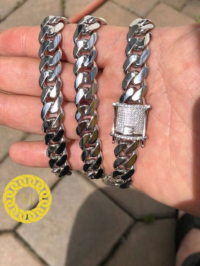 12mm Moissanite Miami Cuban Link Chain | Solid 925 Sterling Silver Moissanite Clasp | GRA certified VVS1 D Colour