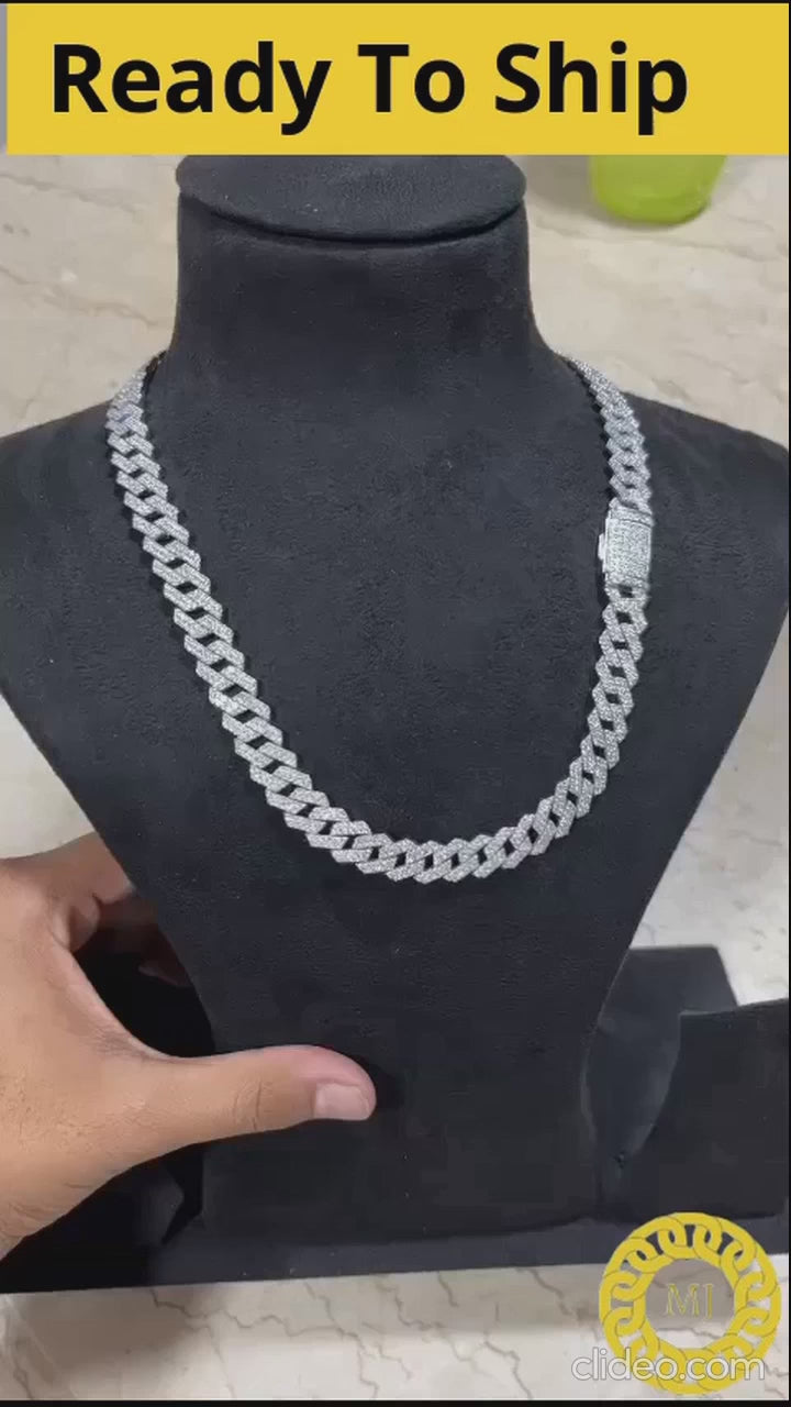 Heavy Solid 925 Sterling Silver Men's VVS1 Moissanite Diamonds Miami Cuban Curb Chain Anti-Tarnish 11mm wide 20" Inches Fine Quality Box Lock Clasp, Moissanite studed Pass The Diamond Tester Test