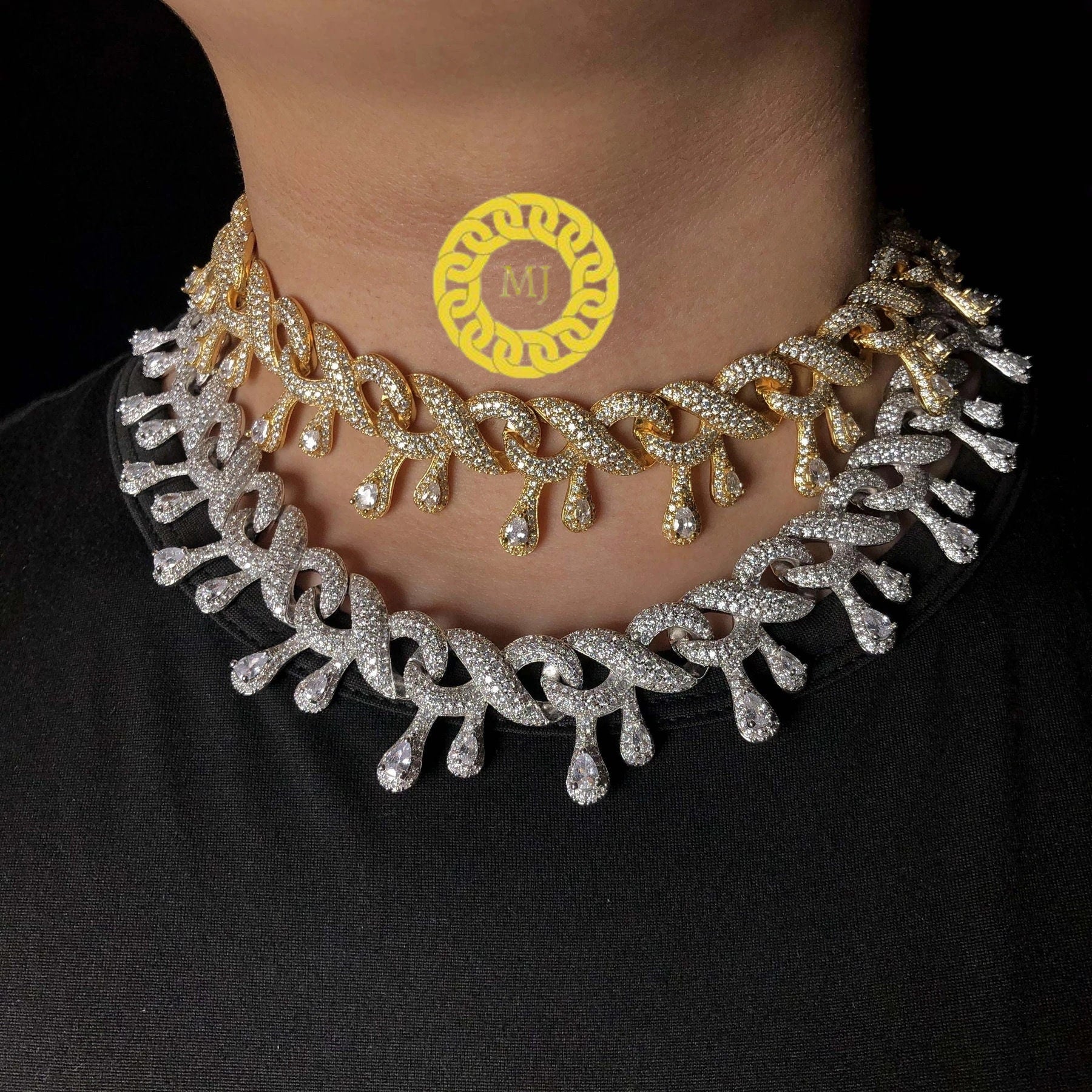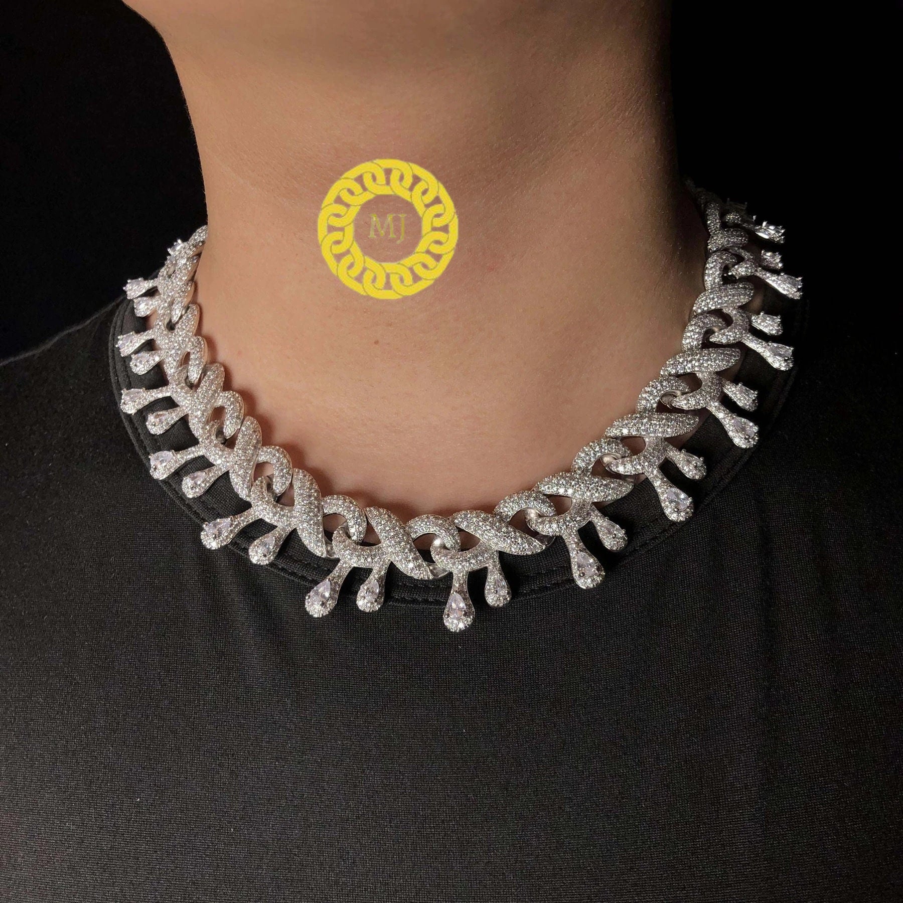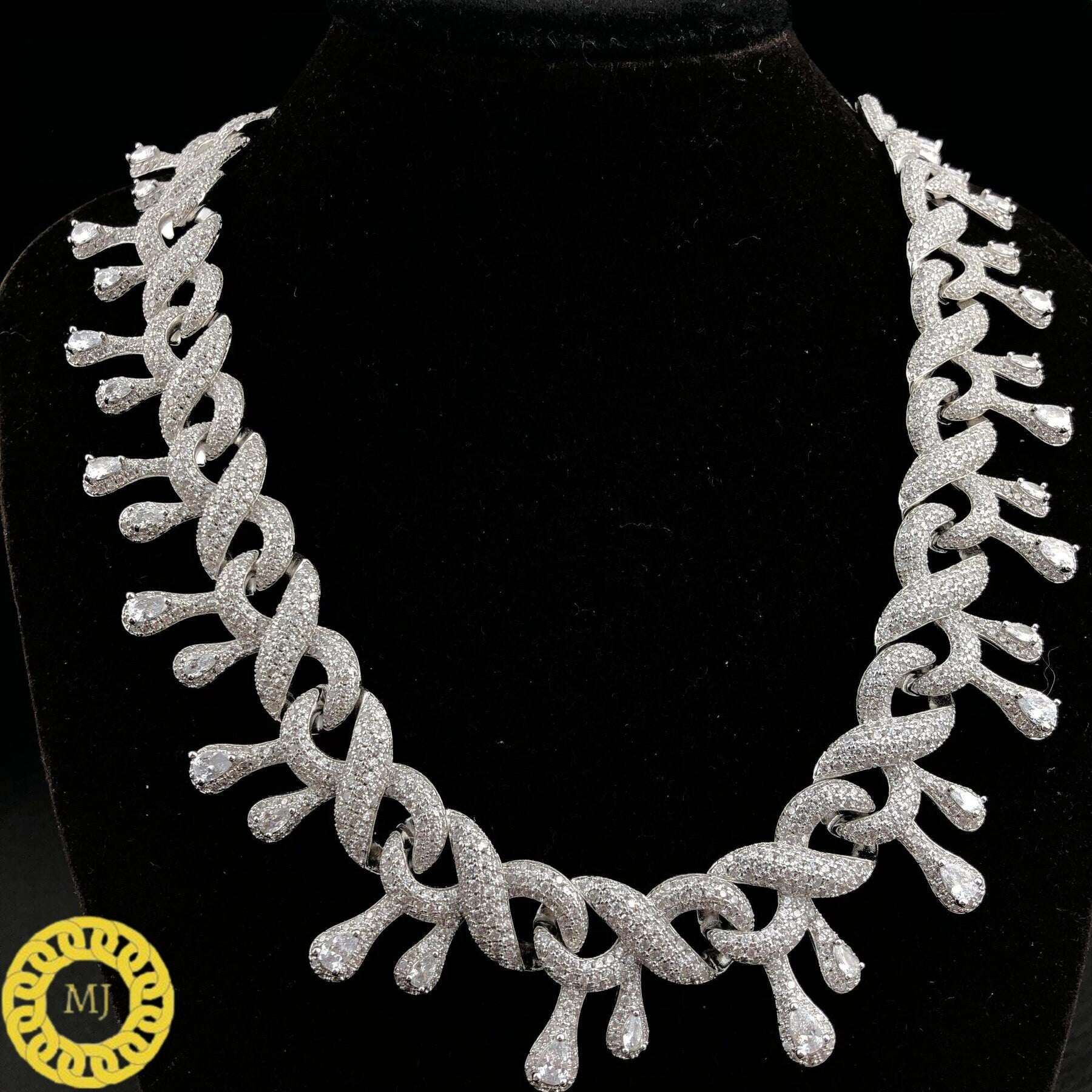 15MM Infinity Drip Cuban Curb Chain | Pear shape moissanite | 925 Solid Sterling Silver | 14k White Gold Plated | VVS1 Quality Moissanite
