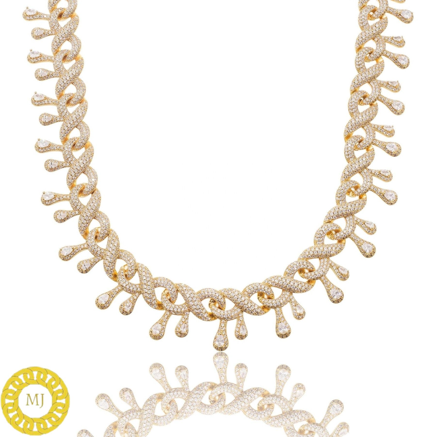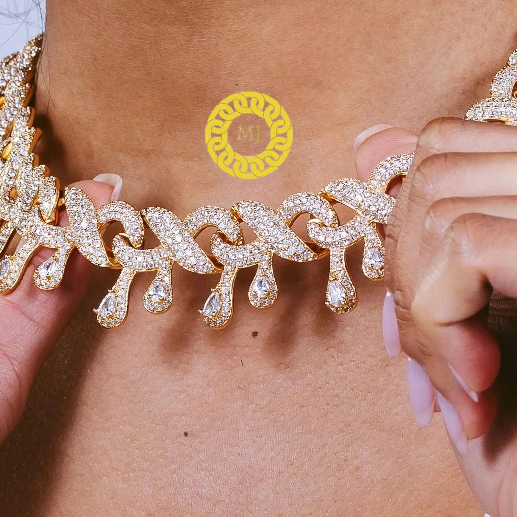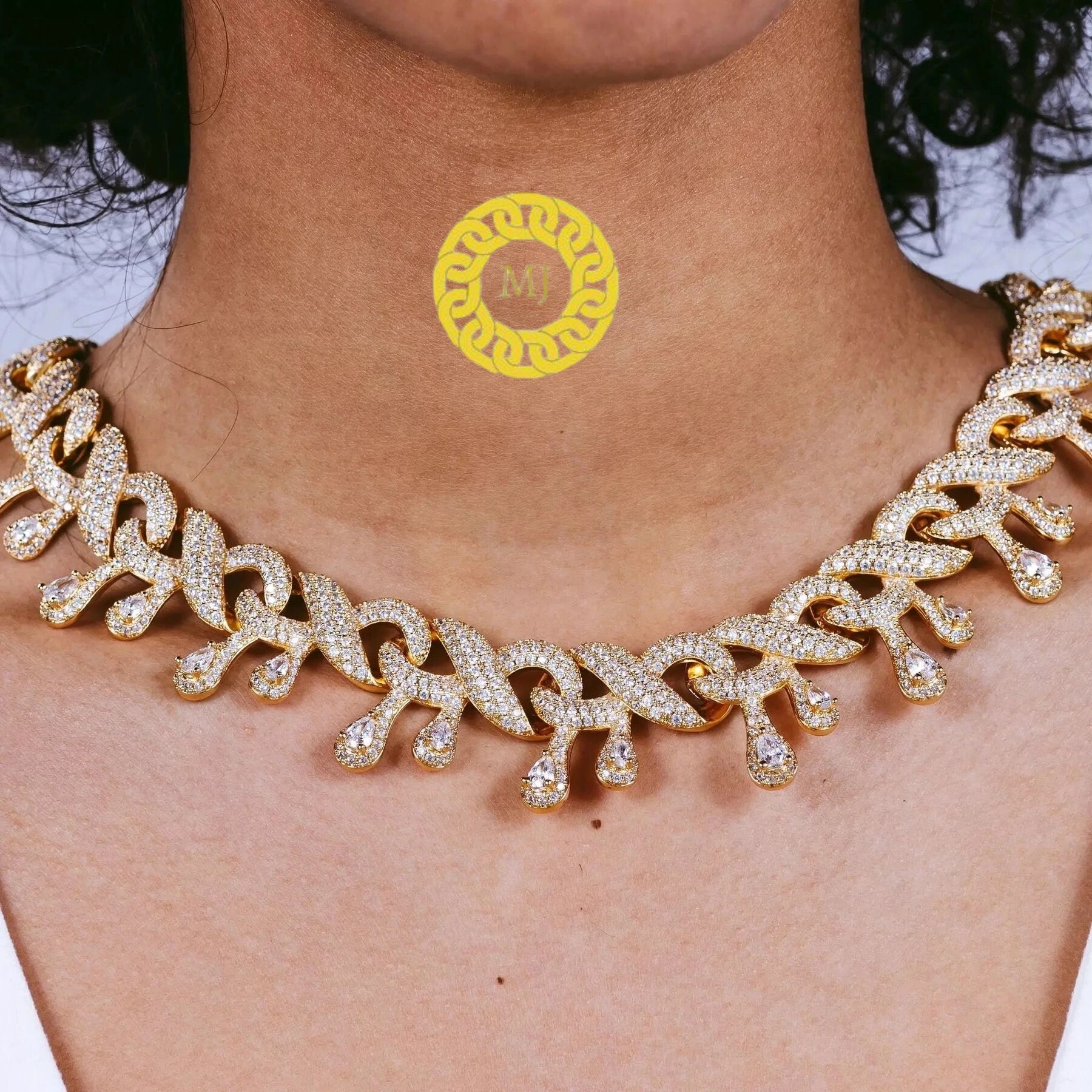 15MM Infinity Drip Cuban Curb Chain | Pear shape moissanite | 925 Solid Sterling Silver | 14k White Gold Plated | VVS1 Quality Moissanite