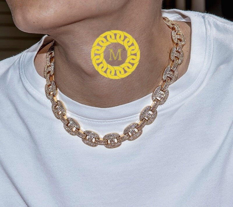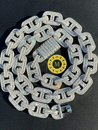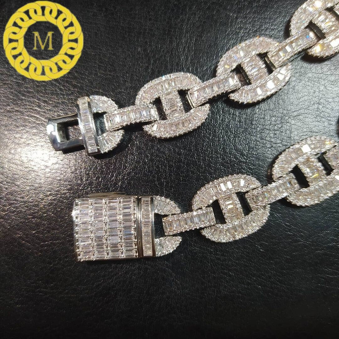 16mm Baguette Mariner Bust Down Chain Real Iced out VVS1 Moissanite Diamond With 14k White Gold Finished In Sterling Silver 925 ,16 - 26 ..