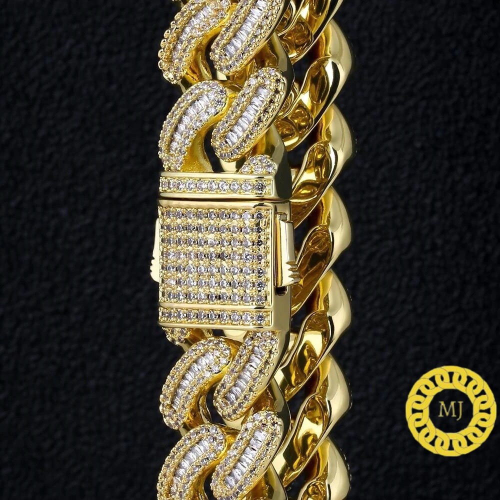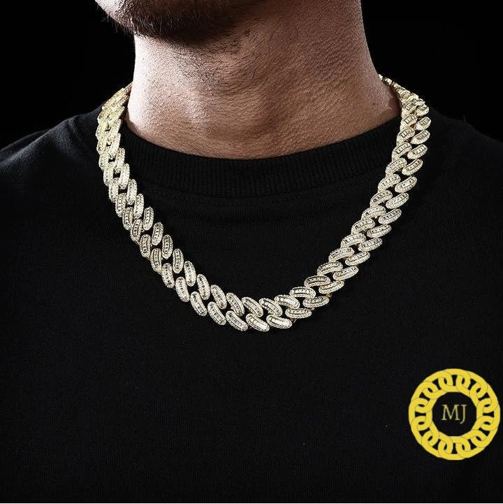 Heavy Solid 925 Sterling Silver Men's VVS1 Moissanite Diamonds Miami Cuban Curb Chain Anti-Tarnish 16mm wide 16"-26" Inch" All Sizes ( Available Message For Size And MM sizes Price will Vary ) Fine Quality Box Lock Clasp, Moissanite studed Pass The Diamond Tester Test