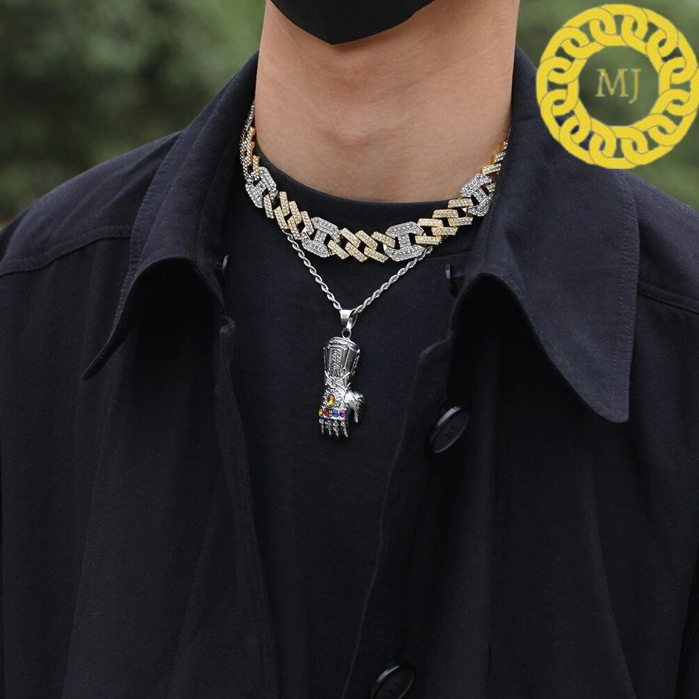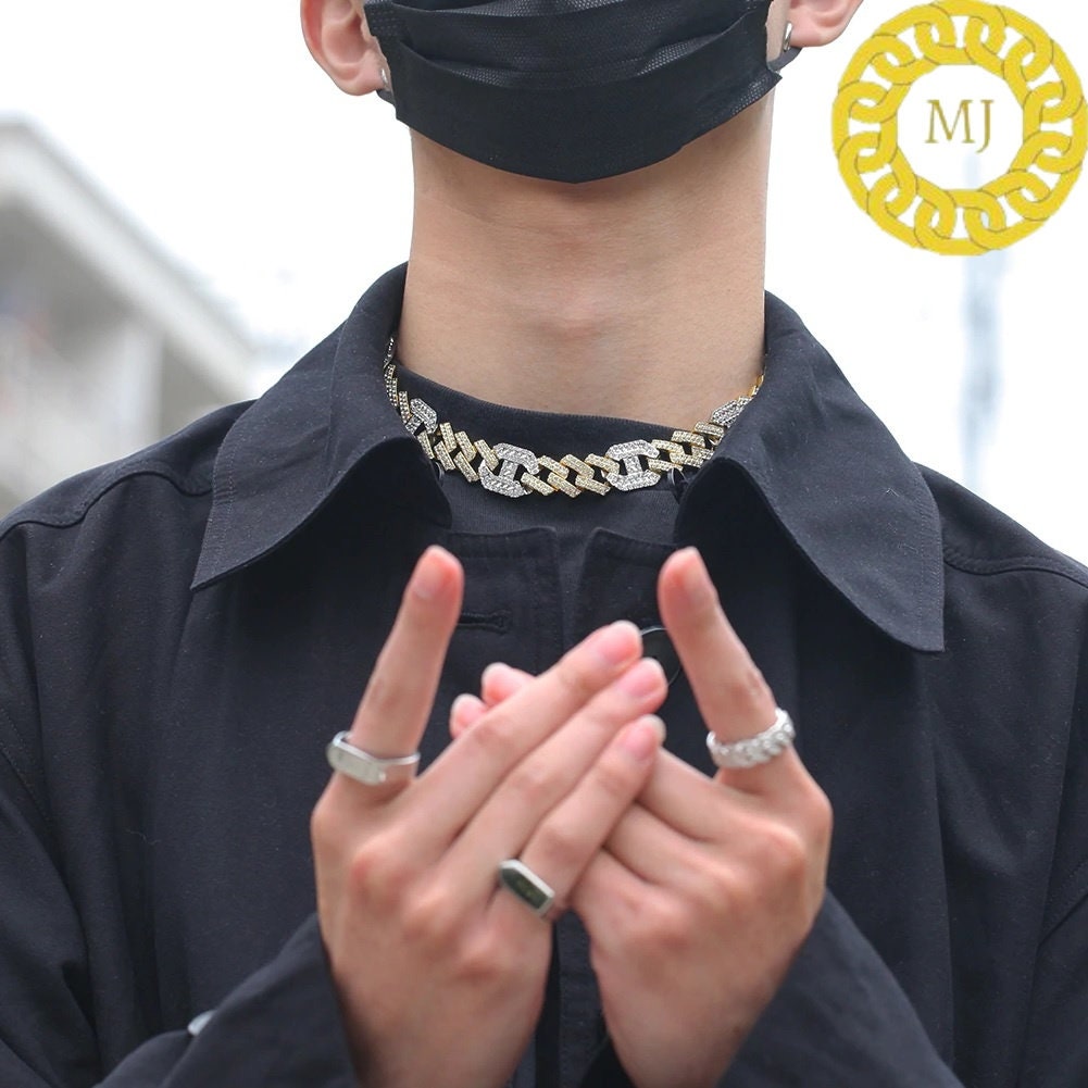 Heavy Solid 925 Sterling Silver Men's VVS1 Moissanite Diamonds Miami Cuban Figaro Chain Anti-Tarnish 17 mm wide 16"-28" Inch" All Sizes ( Available Message For Size And MM sizes Price will Vary ) Fine Quality Box Lock Clasp,Moissanite studed Pass The Diamond Tester Test