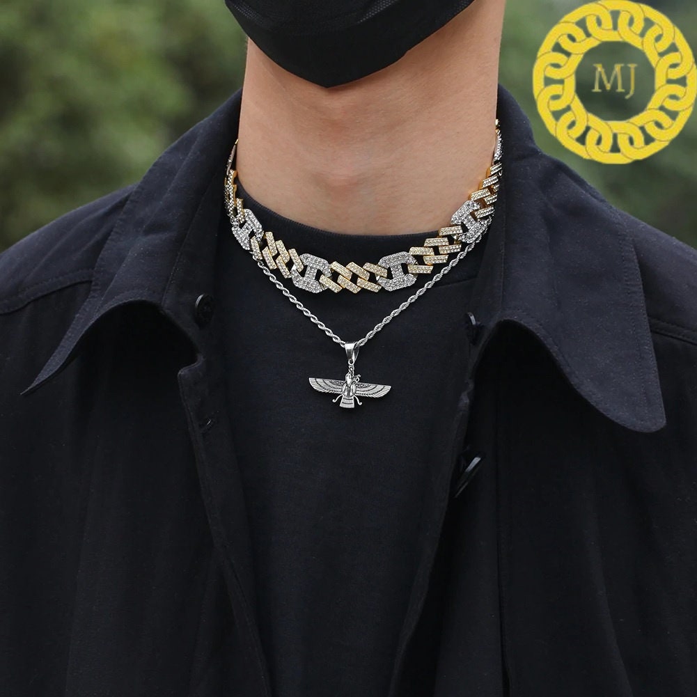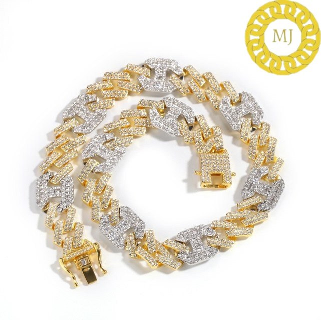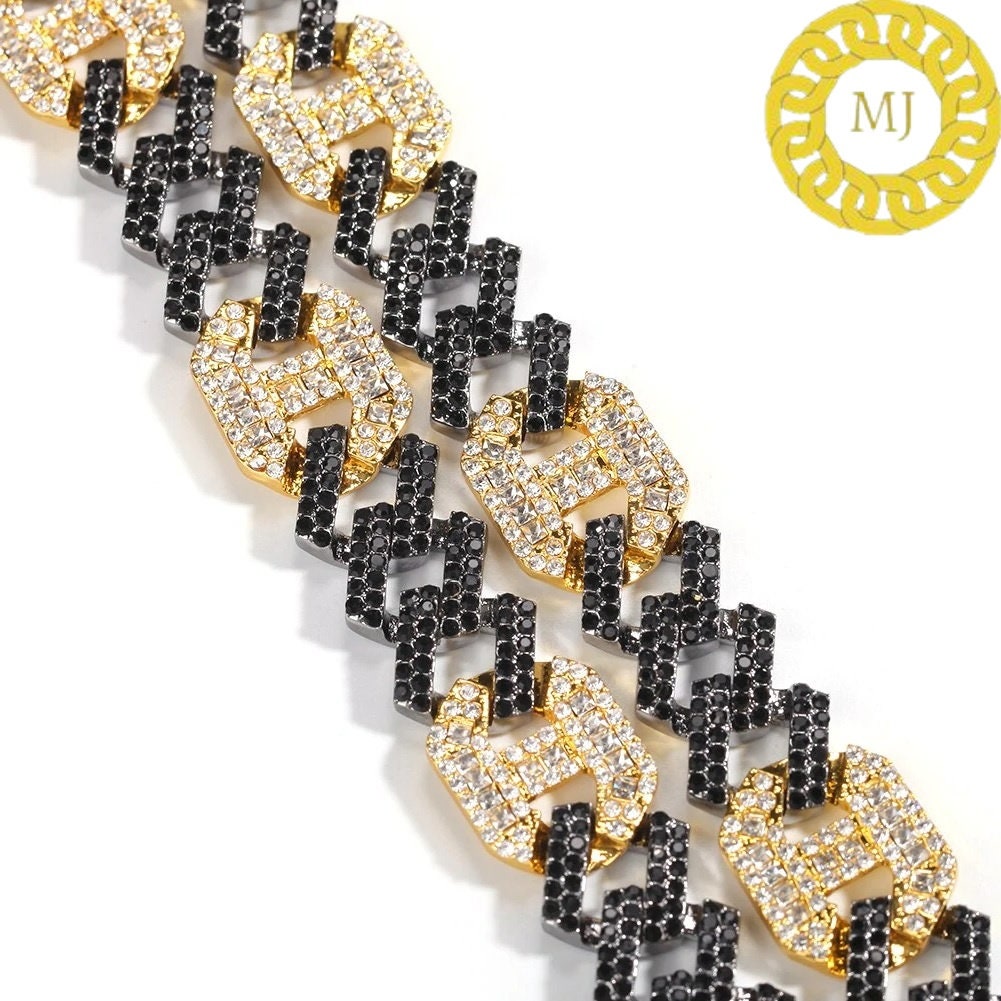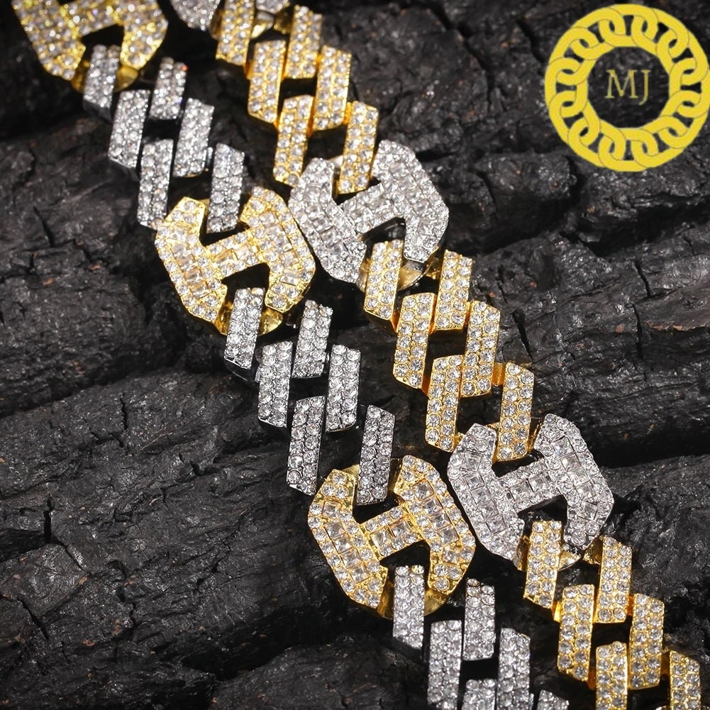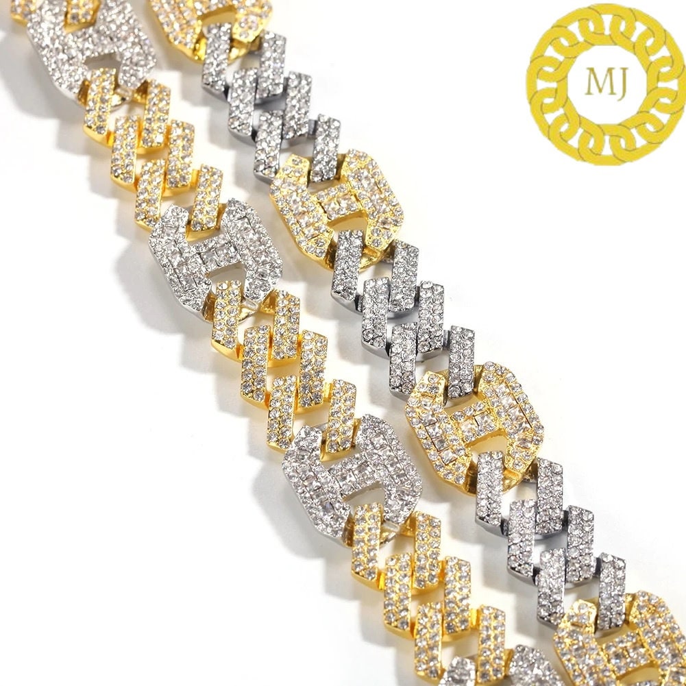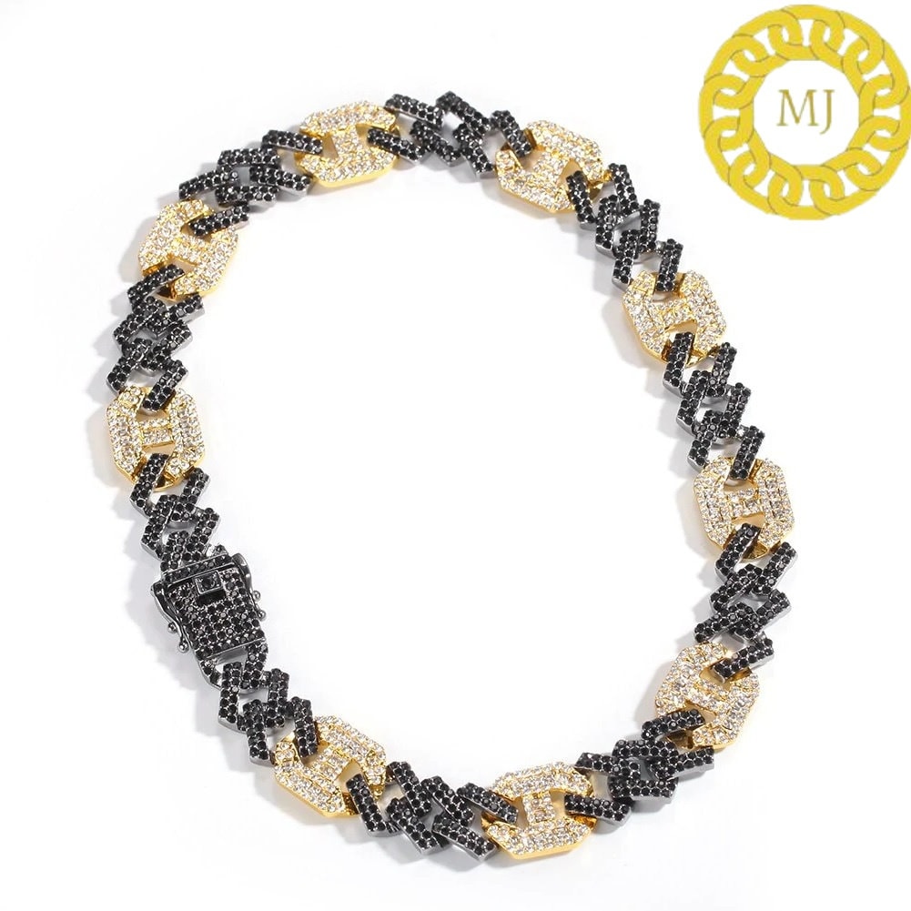 17MM VVS1 Moissanite Diamond Miami Cuban Figaro Chain in Sterling Silver 925, Iced out Two tone 3:1 Figaro Necklace,Pass The Diamond Tester