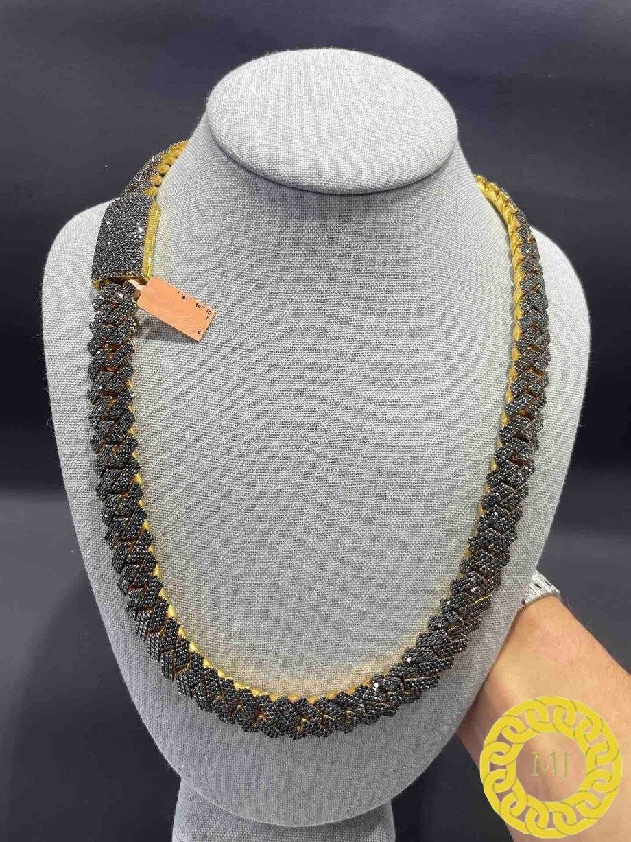 18mm Black VVS1 Quality Moissanite Diamond Cuban chain | 925 Solid Sterling Silver | Silver | Cuban Curb Link Chain | Special Box Closure