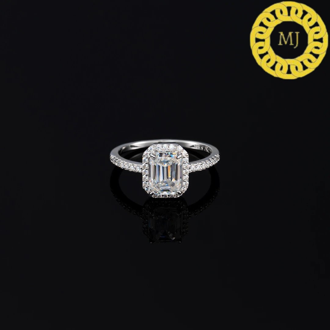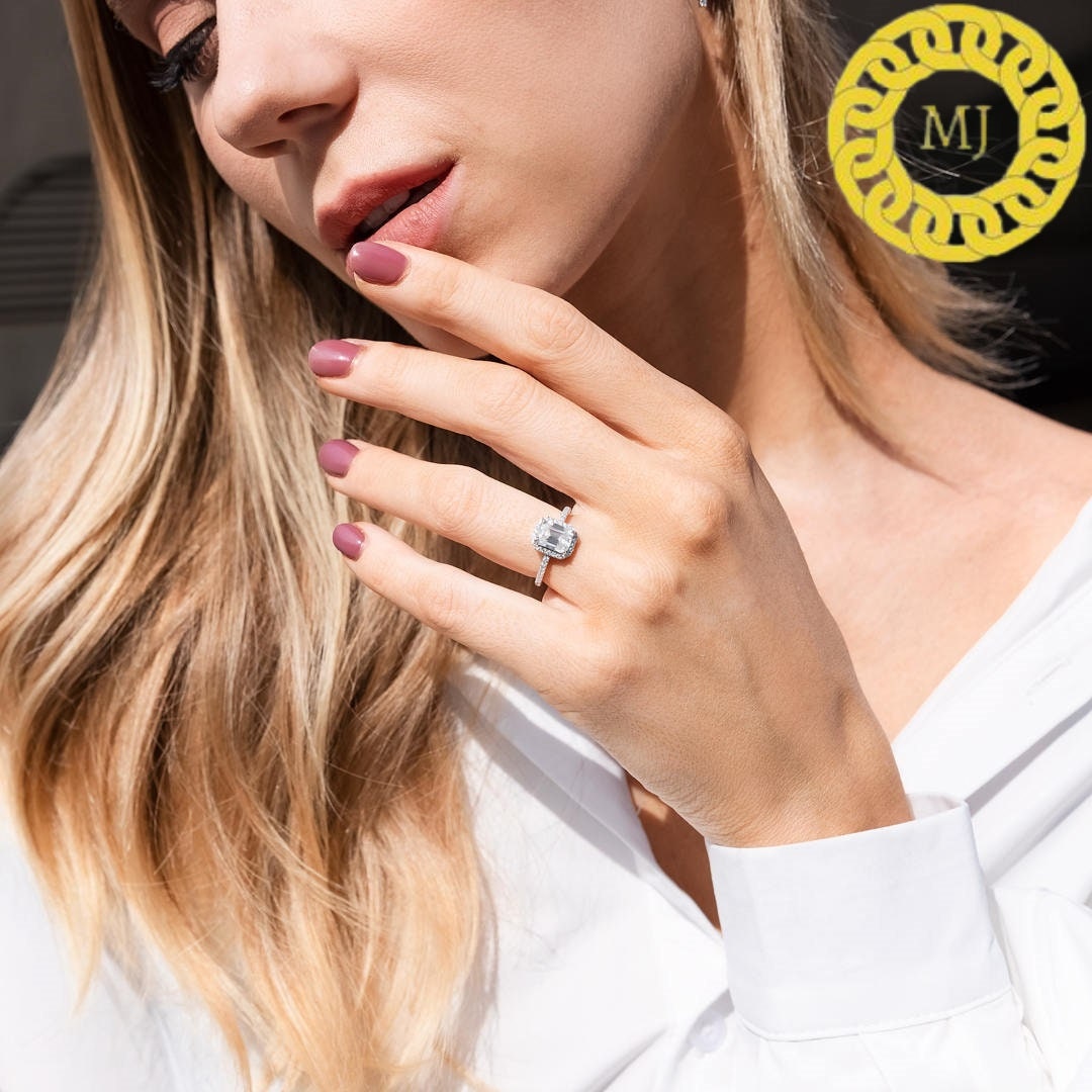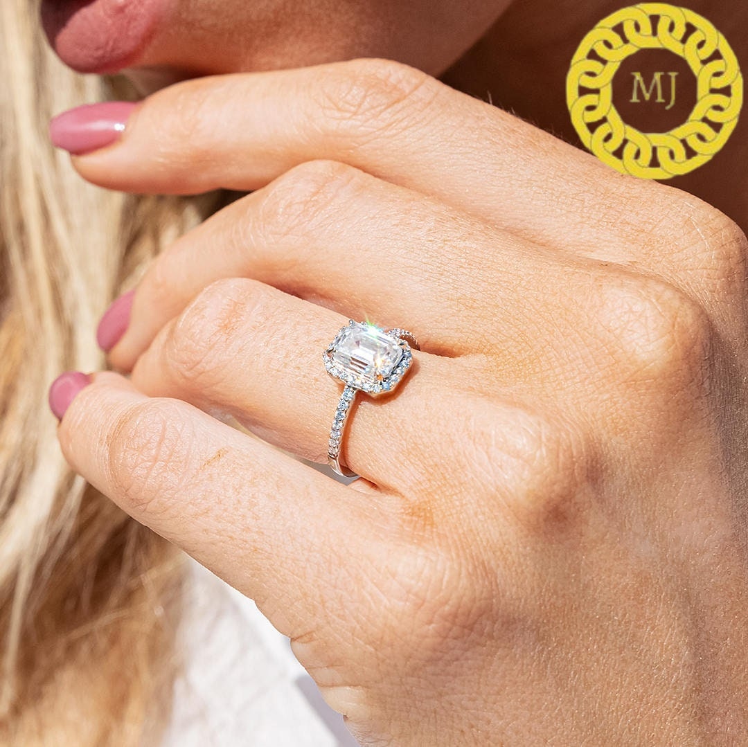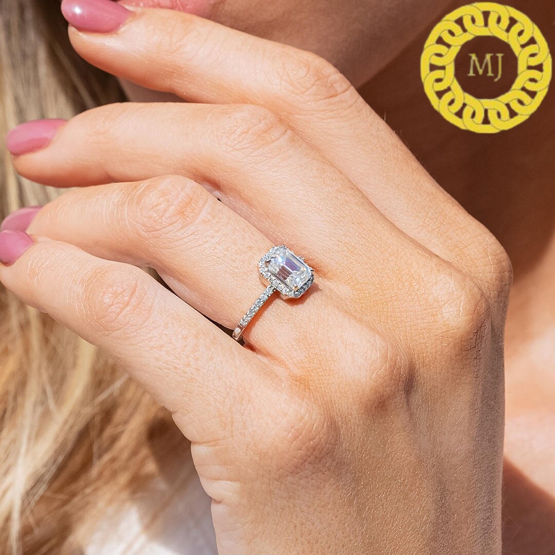 2.2 Ct Halo Emerald Cut Moissanite Ring, VVS1 D colour GRA certified Moissanite ,Emerald Cut Engagement Ring, Emerald Cut Solitaire