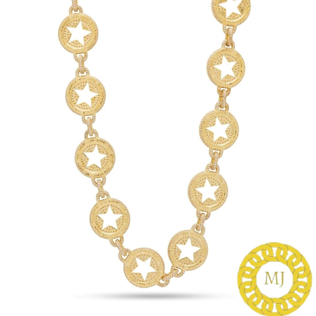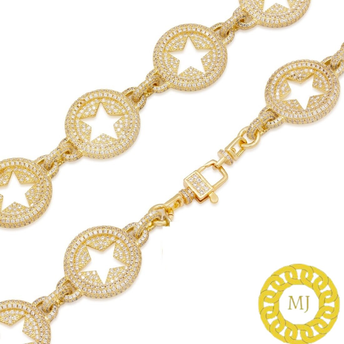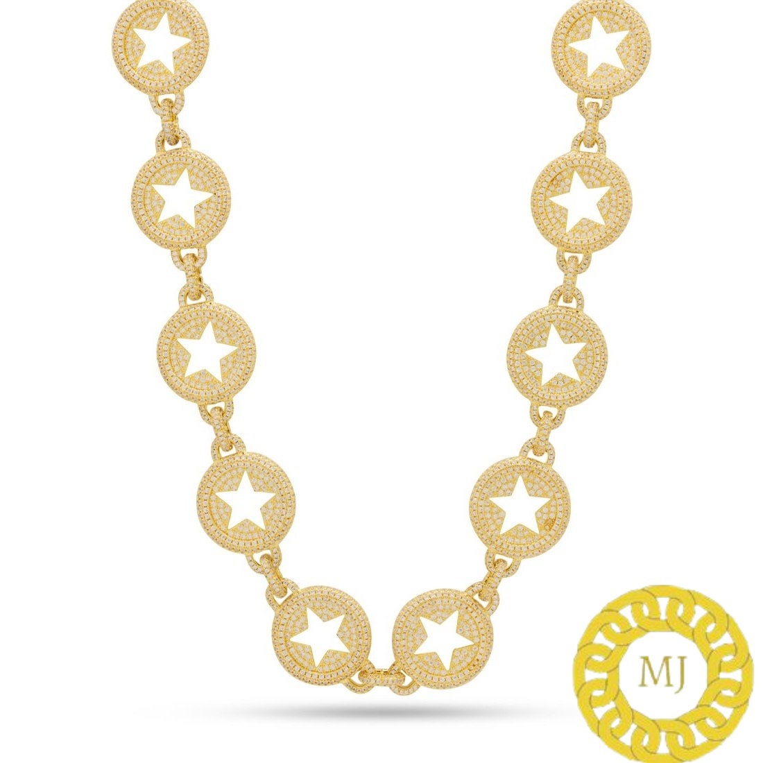 20 mm circle star chain , Heavy Solid 925 Sterling Silver VVS1 Moissanite Diamonds Studded Chain,Icedout Rapper chains, Icedout Necklace Moissanite studed Pass The Diamond Tester Test