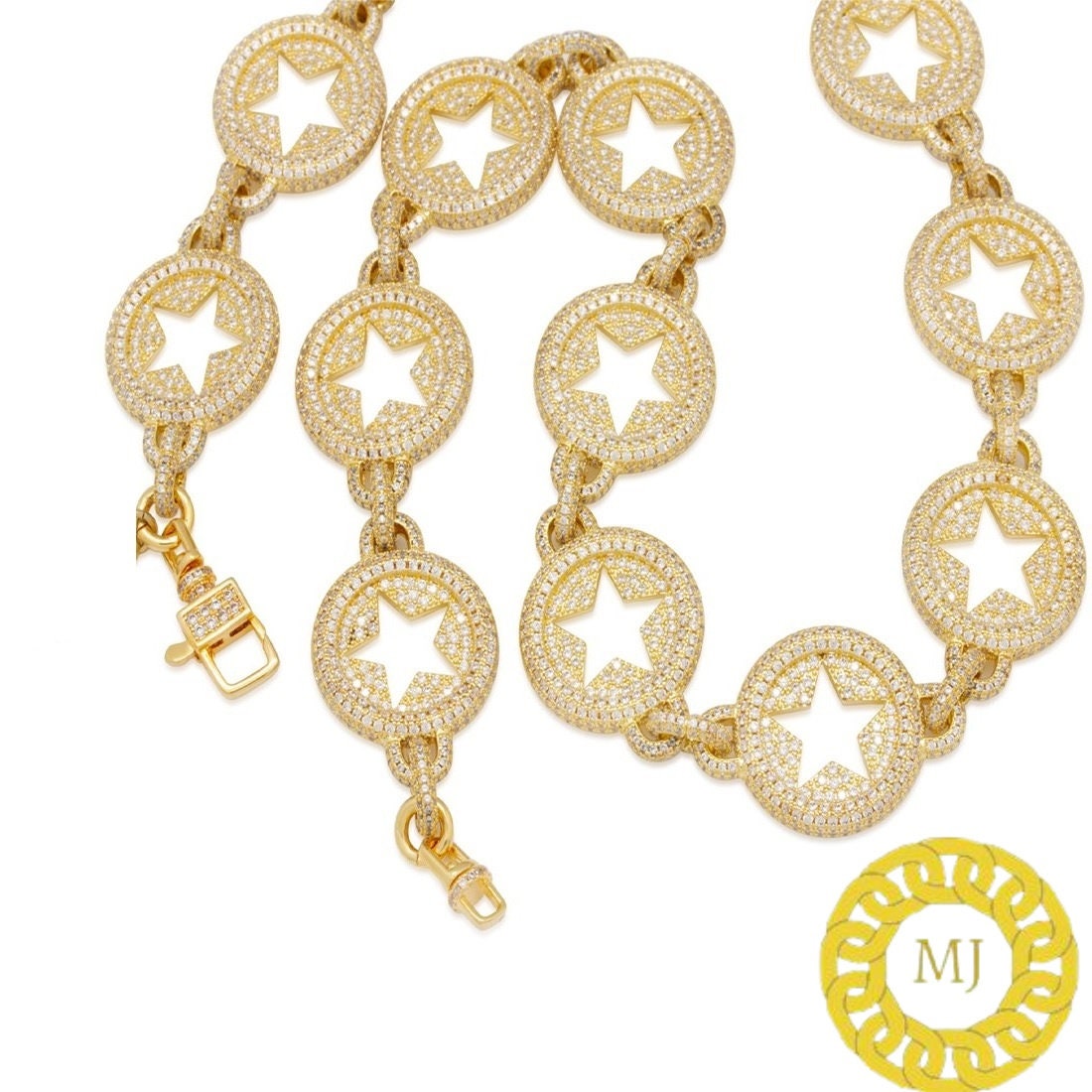 20 mm circle star chain , Heavy Solid 925 Sterling Silver VVS1 Moissanite Diamonds Studded Chain,Icedout Rapper chains, Icedout Necklace