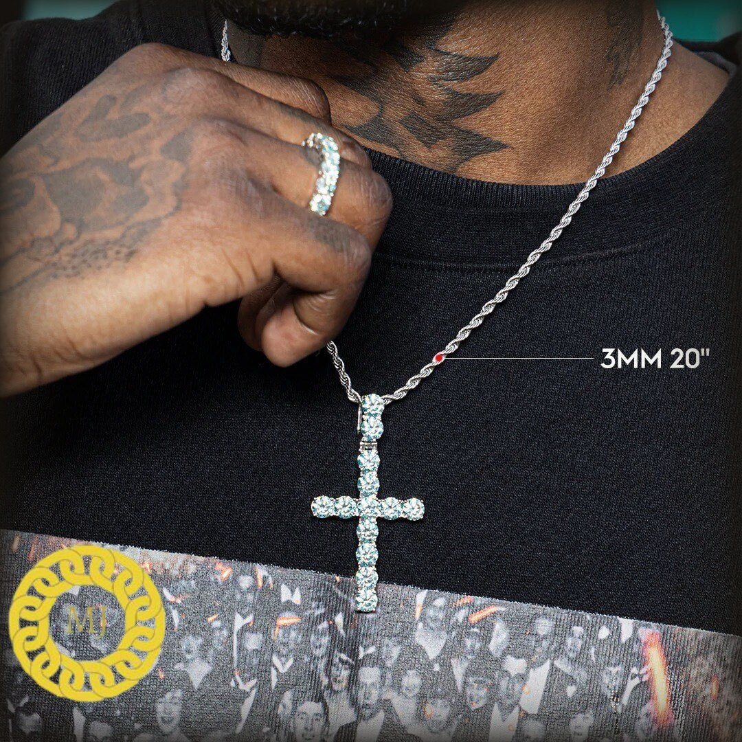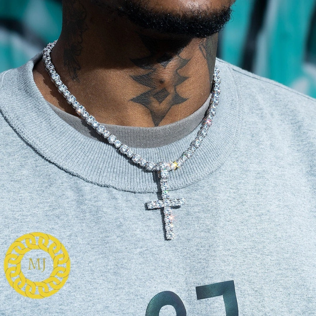 5 MM VVS Moissanite Diamond Cross Pendant,Icedout bling cross Silver Pendant For Men & Women,Charm Pendant,Wedding Pendant, Anniversary gift