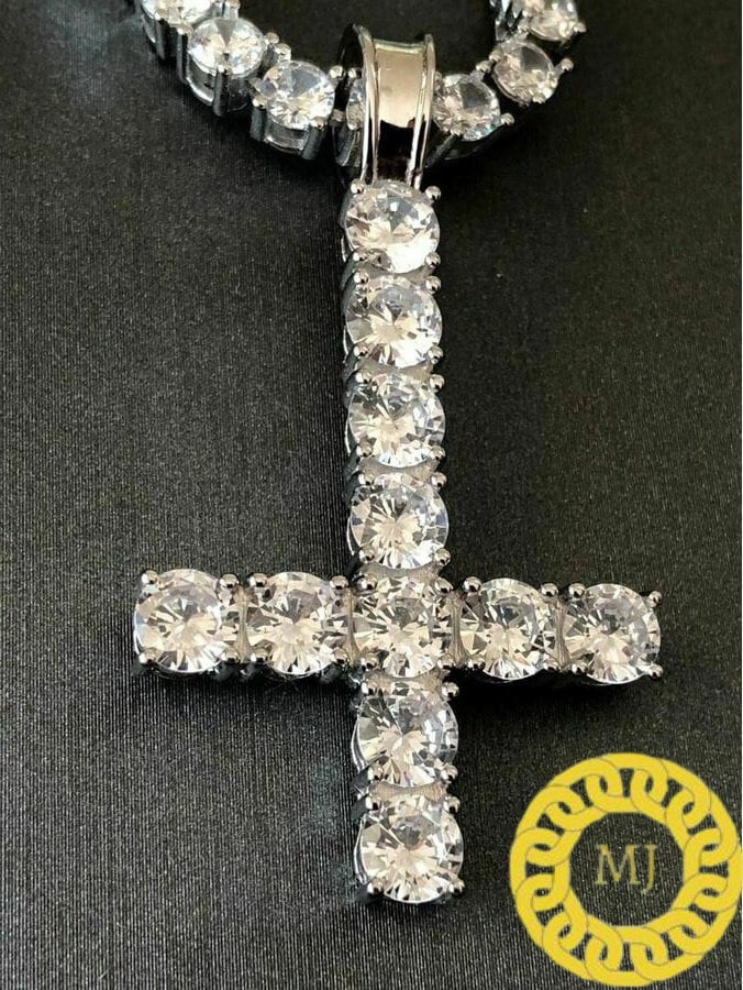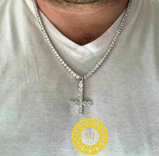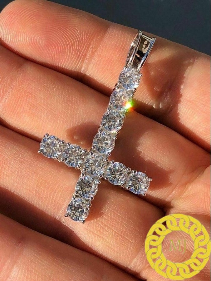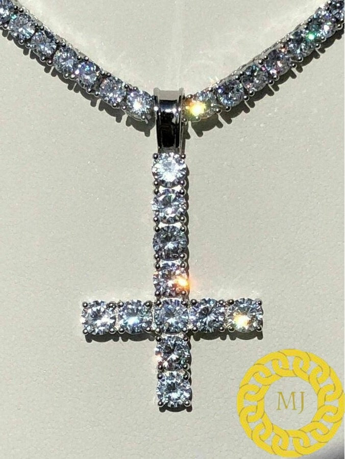 5 MM VVS Moissanite Diamond Cross Pendant, upside down cross Silver Pendant For Men & Women, Charm Pendant,Wedding Pendant, Anniversary gift