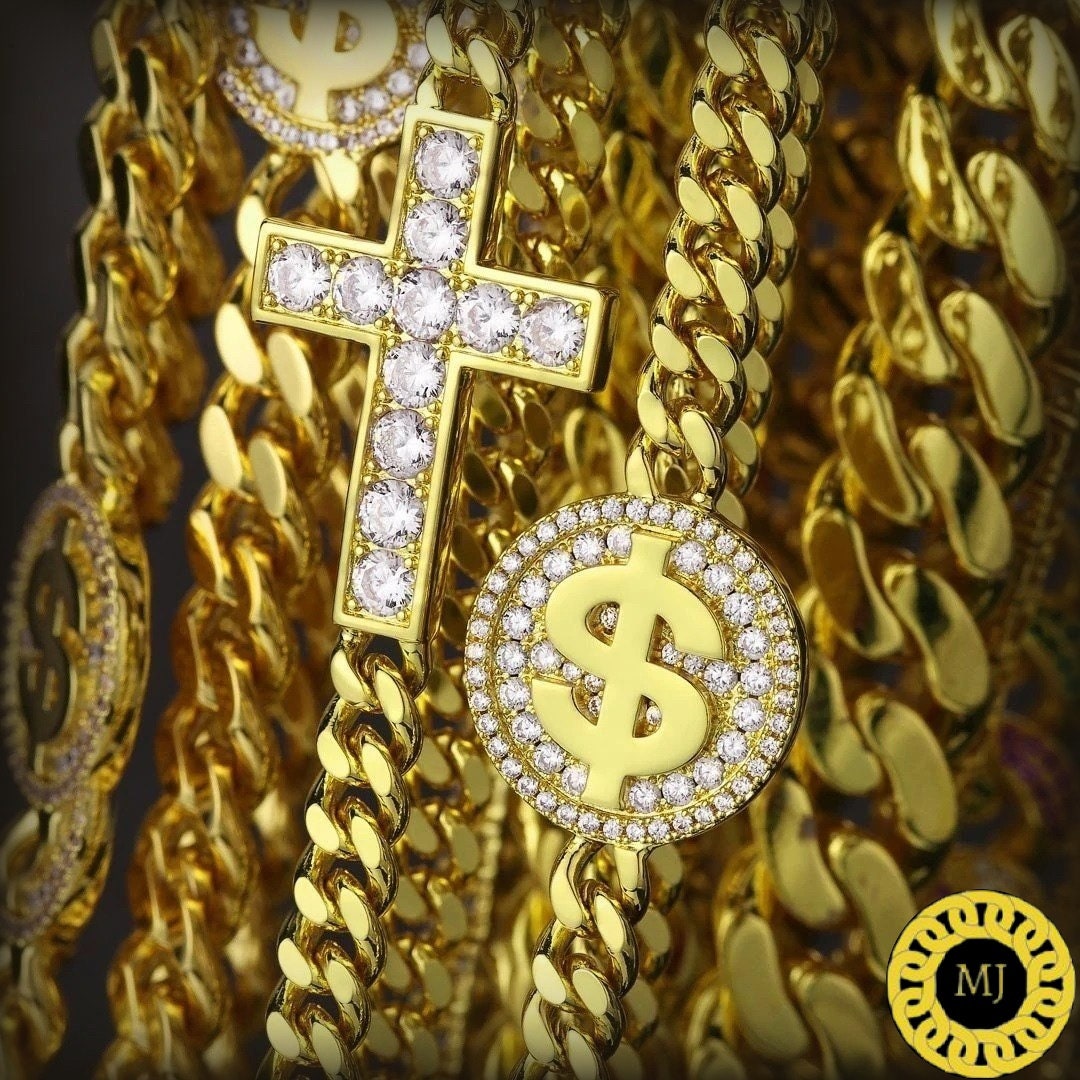6MM Cuban Chain With Cross and Dollar coin , Ice Rapper Necklace,Moissanite Silver necklace, Layer necklace,Hiphop Necklace,Dollar Necklace