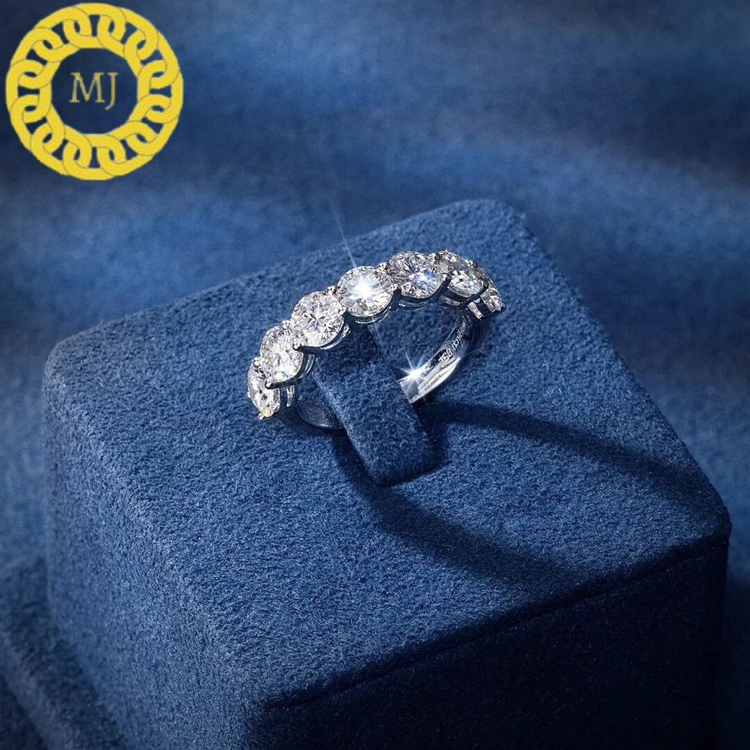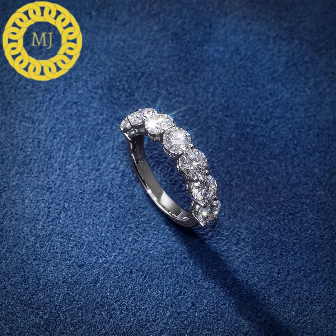 7 Stone 5mm VVS Moissanite Ring - 7 Stone 5mm Diamond Ring - Diamond/ Moissanite Half Eternity Ring - 5mm Wedding Band - Anniversary Gift