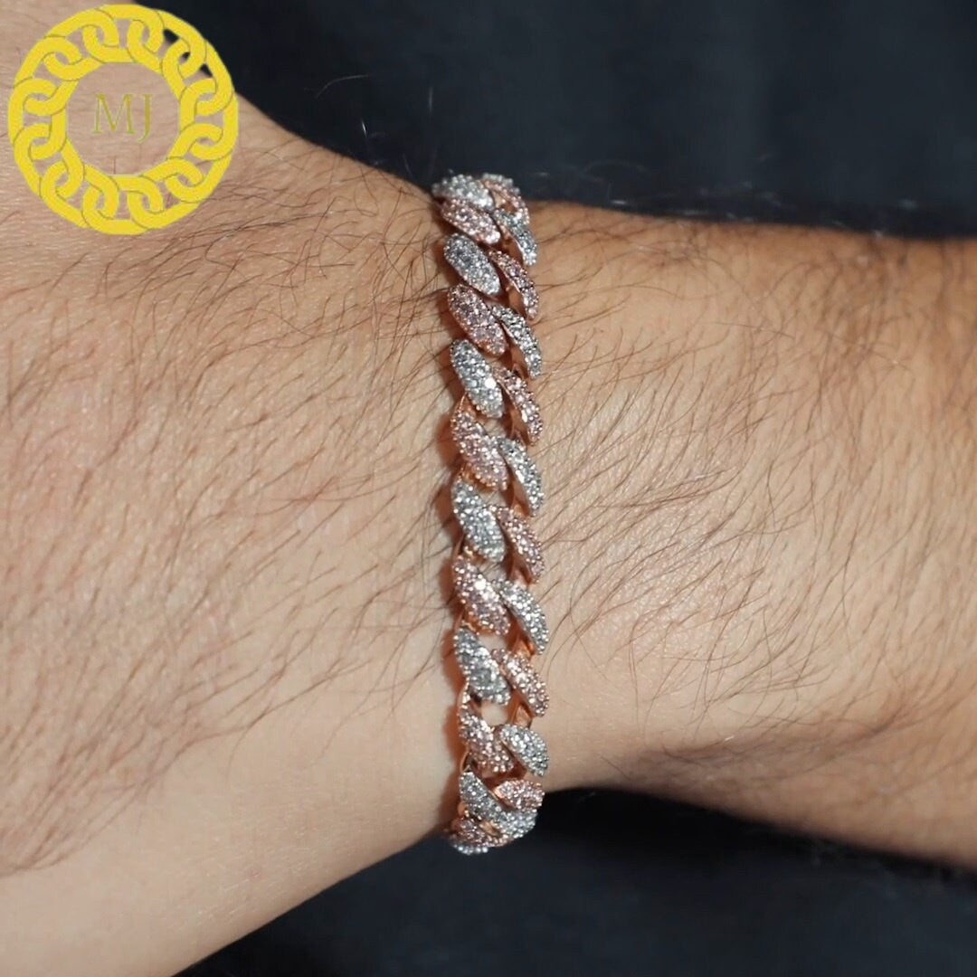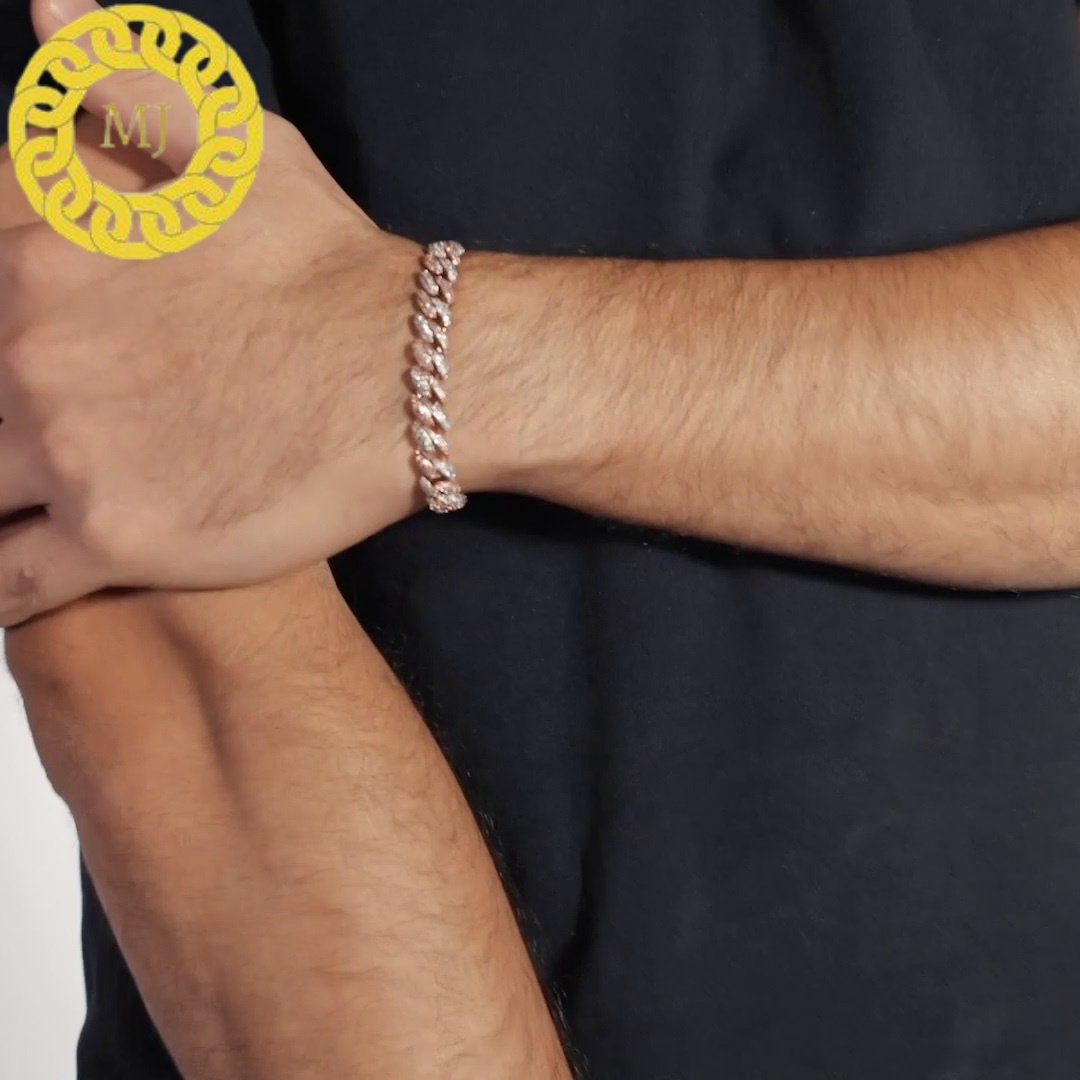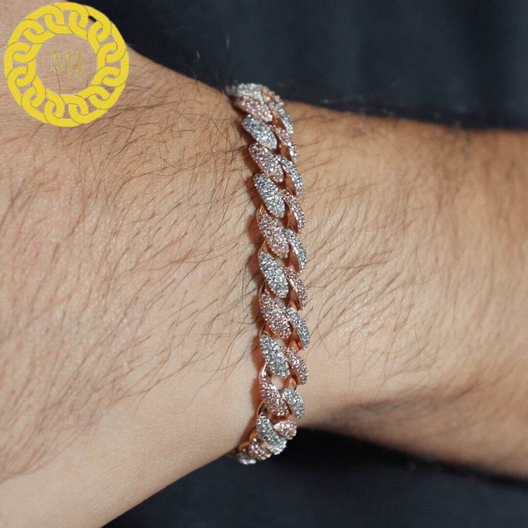 8.5mm Fully Iced Out Two Tone VVS Moissanite Diamond Miami Cuban Bracelet Custom Hip Hop Rapper 10mm Cuban Link Bracelet For Men & Women