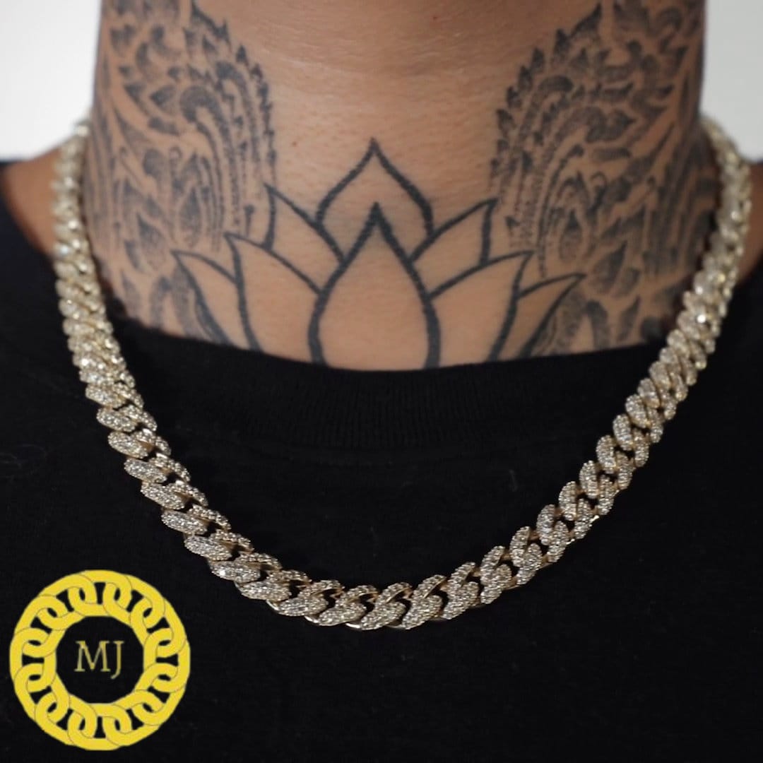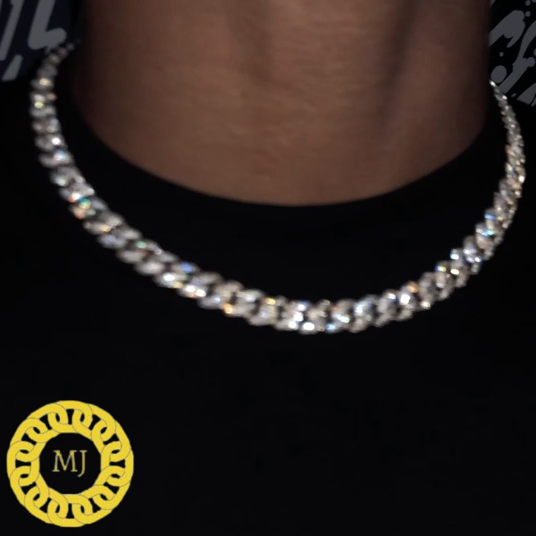 8mm VVS Moissanite Diamond Prong Link Chain 925 Sterling Silver Cuban Link Necklace GRA Certificate VVS Clarity D Color Pass Diamond Tester