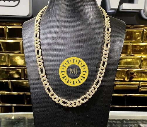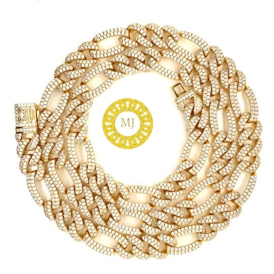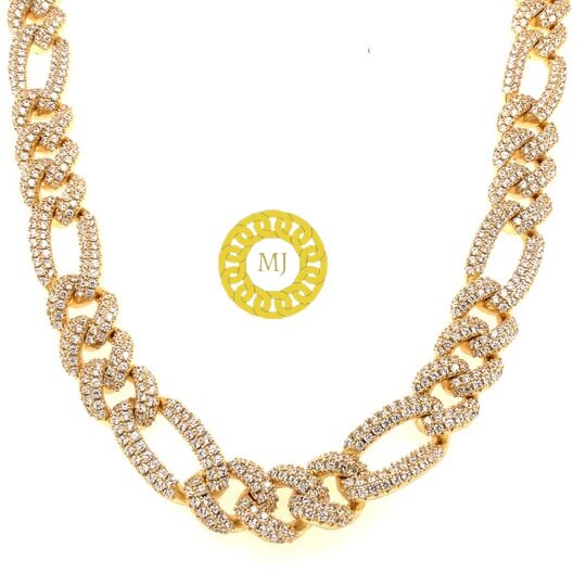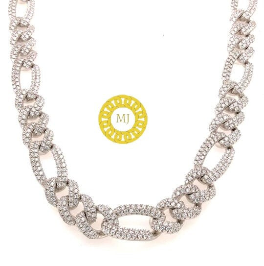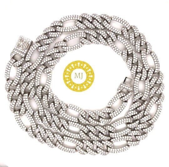 Heavy Solid 925 Sterling Silver Men's VVS1 Moissanite Diamonds Miami Figaro Curb Chain Anti-Tarnish 8mm wide 16"-28" Inch" All Sizes ( Available Message For Size And MM sizes Price will Vary ) Fine Quality Box Lock Clasp, Moissanite studed Pass The Diamond Tester Test