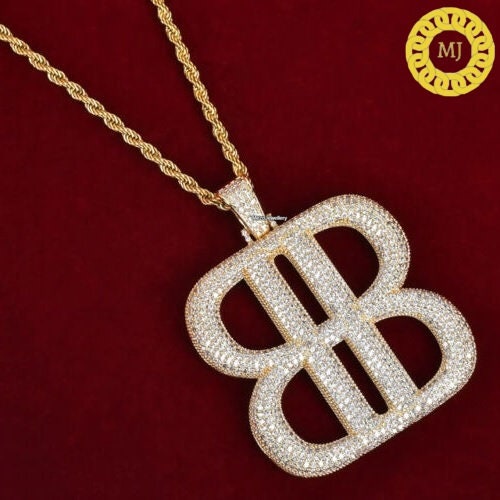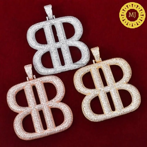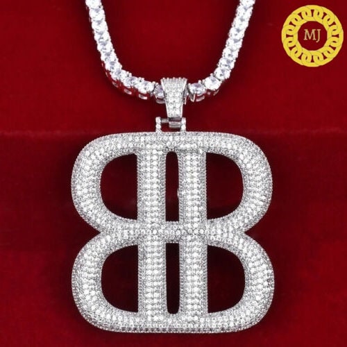 925 Silver Icy "BB" Moissanite Diamond, Iced Out "BB" Moissanite Diamond Pendant,Streetstyle Diamond Pendant,Dope Moissanite Diamond Jewelry