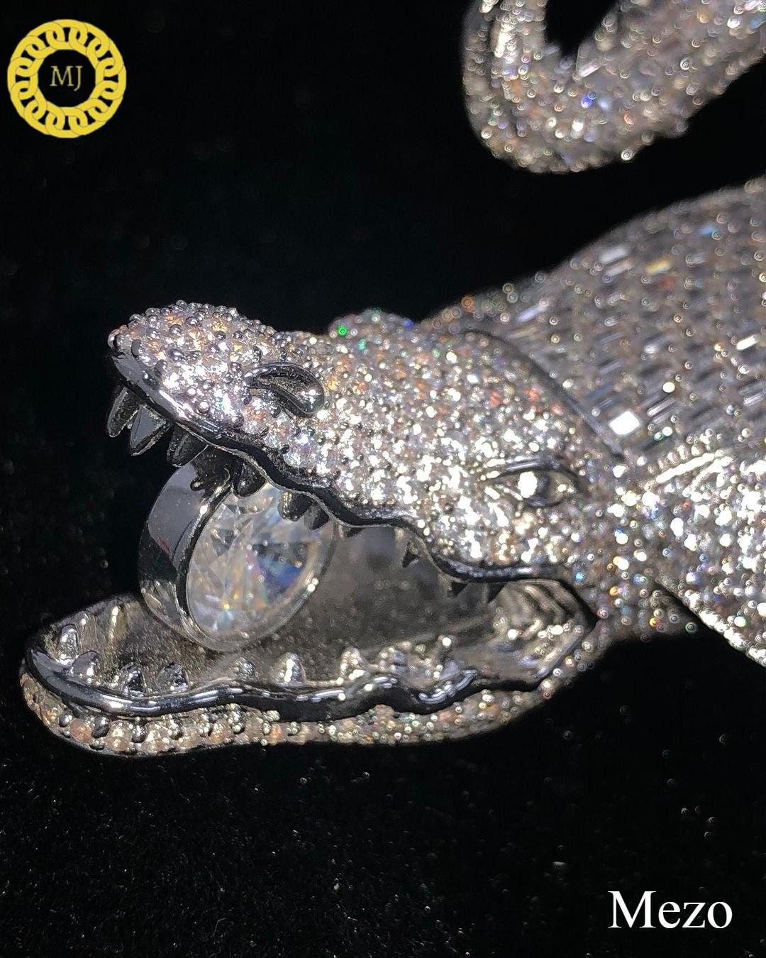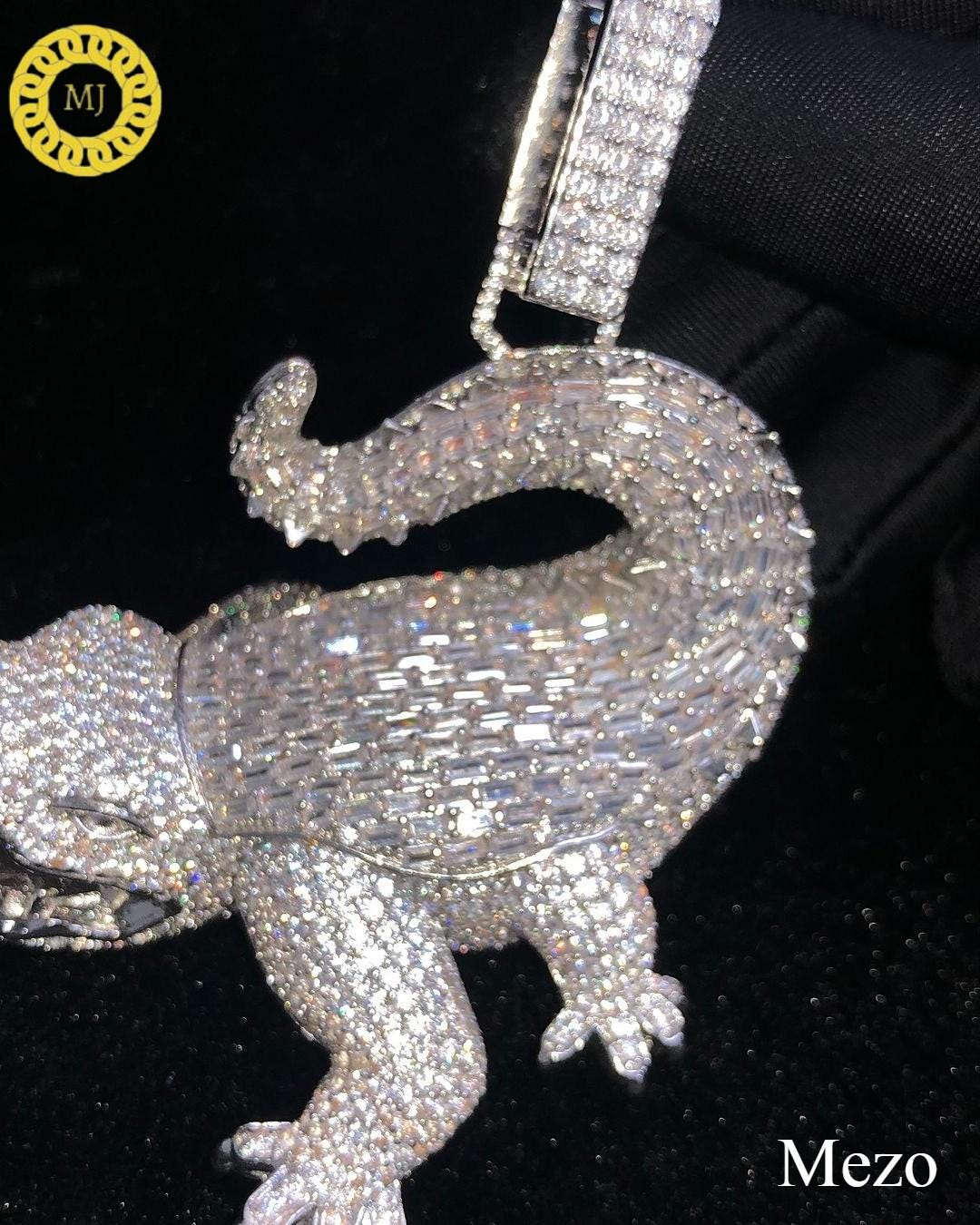 Custom Fully Iced Crocodile Pendant /VVS Moissanite Diamond  Round & Baguette Diamond / 3D ice Out / Pendant 925 Sterling Silver 2.5inch