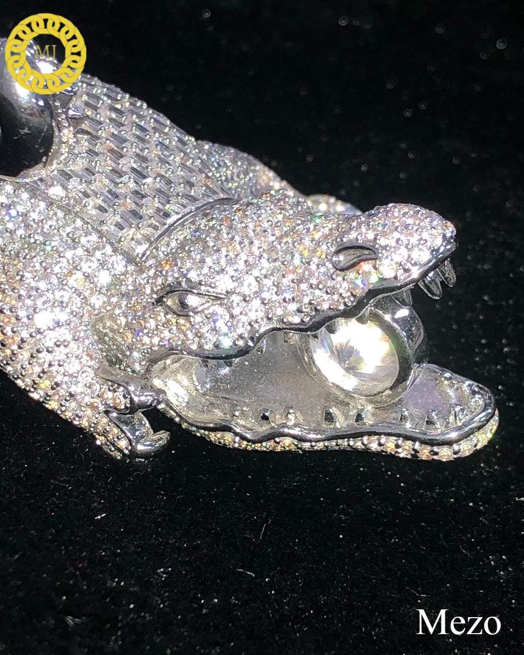 925 sterling silver crocodile pendant,GRA Moissanite Diamond Icedout crocodile necklace, animal necklace, wild animals, ferocious animals