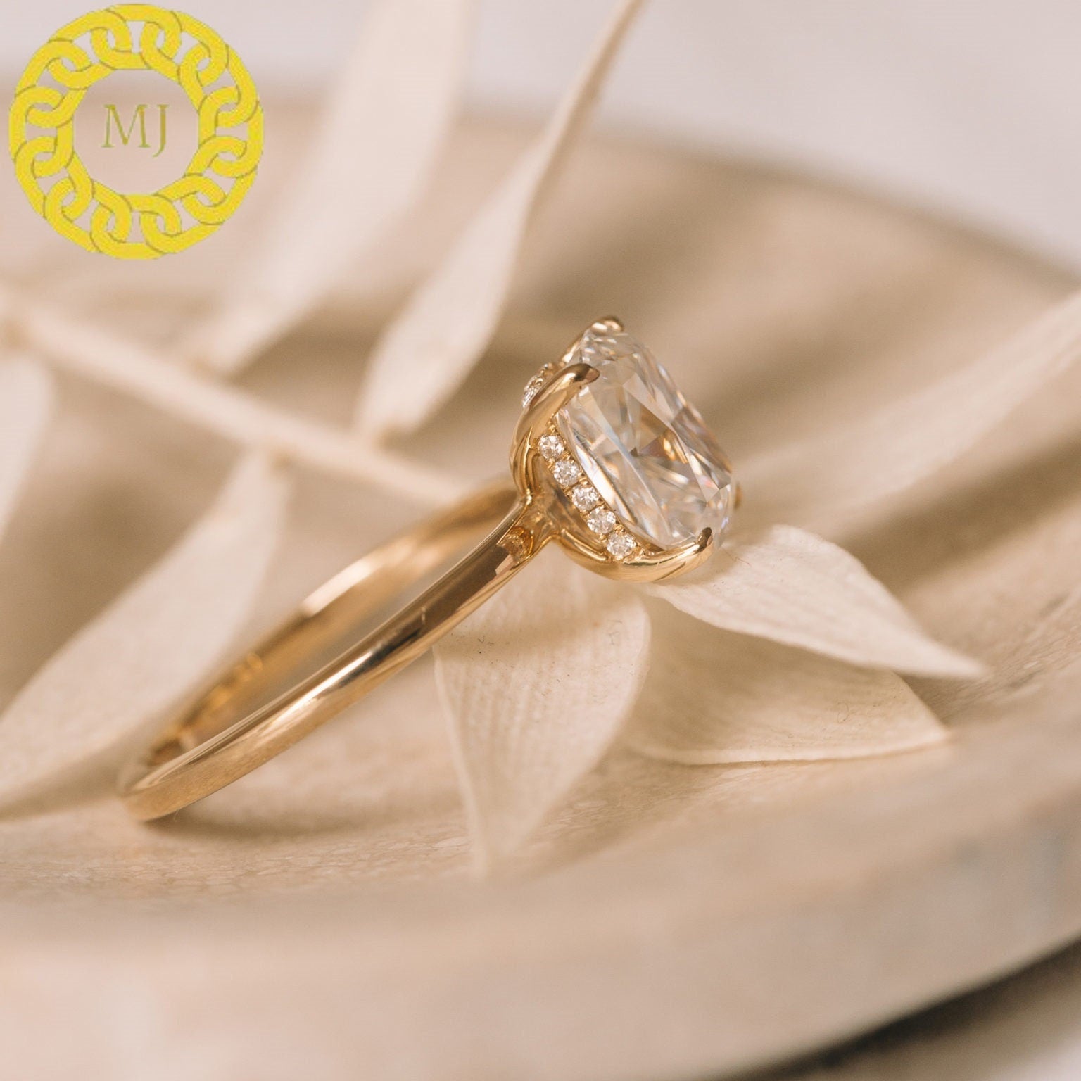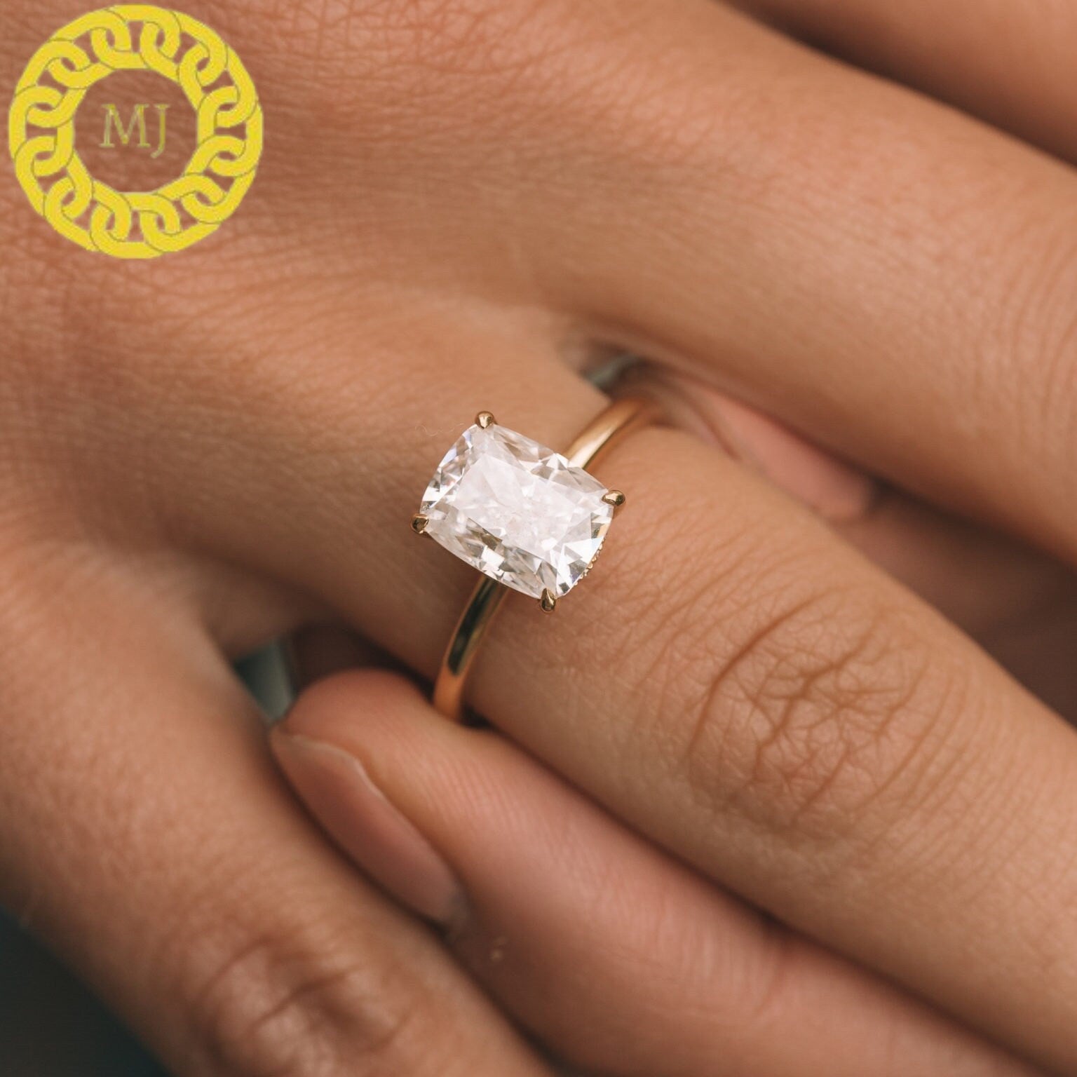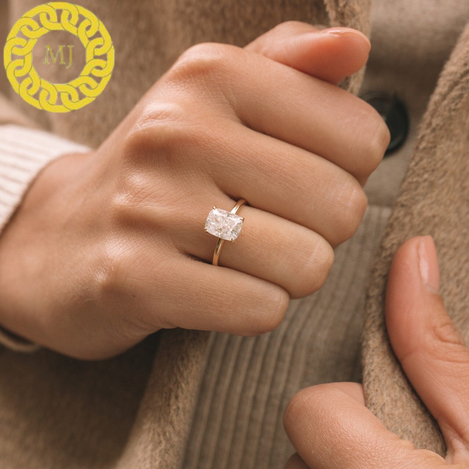 Cushion Cut Moissanite diamond Engagement Ring, Cushion Cut Ring, Sterling Silver & Gold Bridal Ring, Diamond Promise Ring, Anniversary Ring