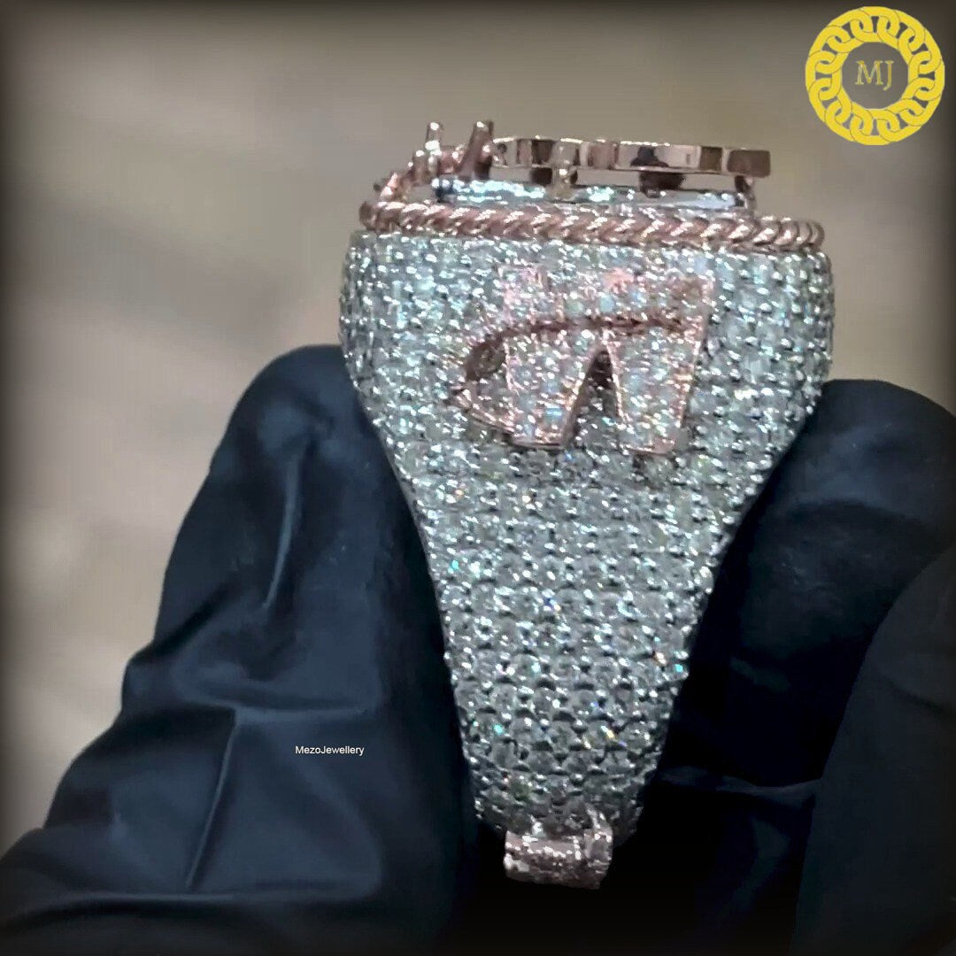 Customized Iced Out VVS1 Moissanite Letter Ring, hip Hop Ring, Men's Custom Ring, Silver Jewelry, Pass Tester, Gift For Him