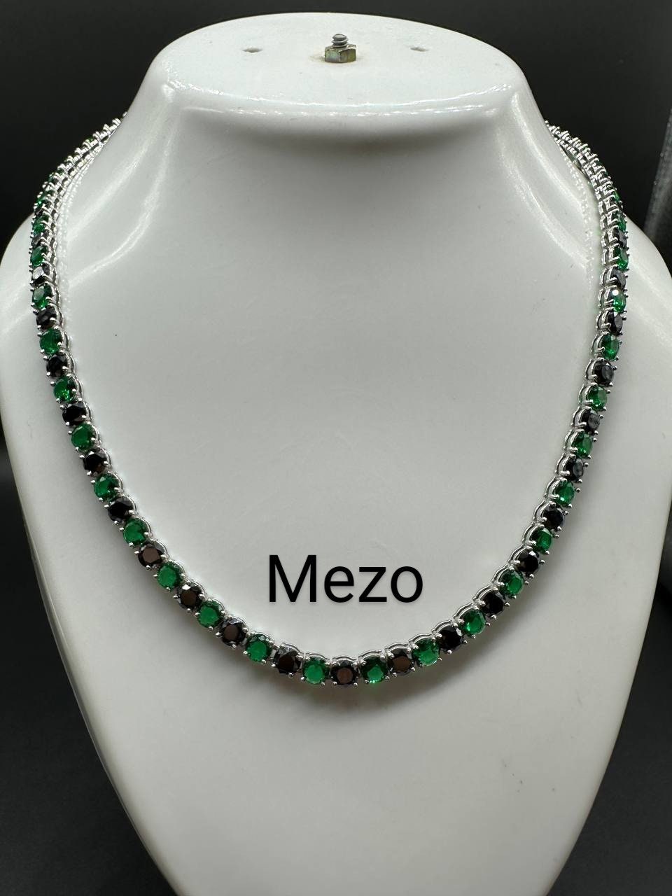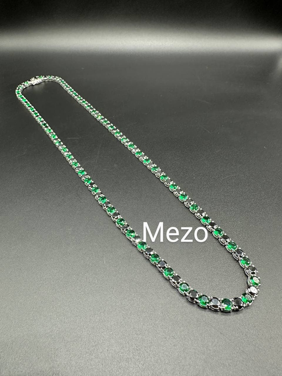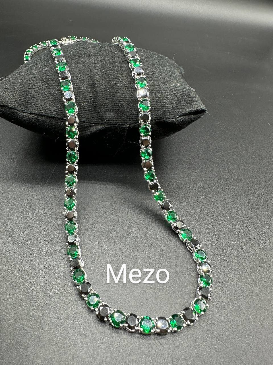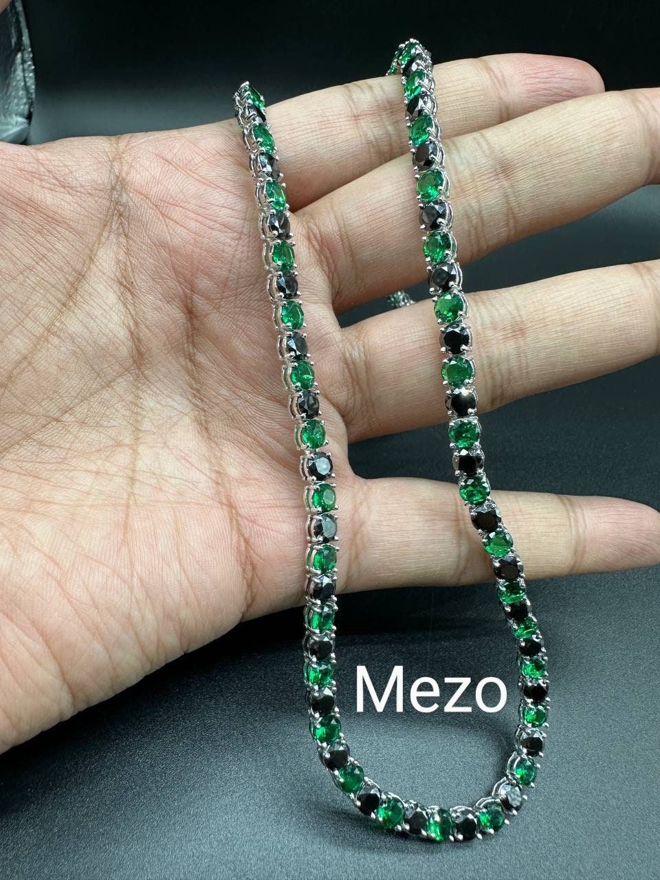Emerald and black diamond Tennis Necklace,SOLID 14 k Gold Iced Out Tennis Chain Single Row 16"-30",Black and green unique Necklace