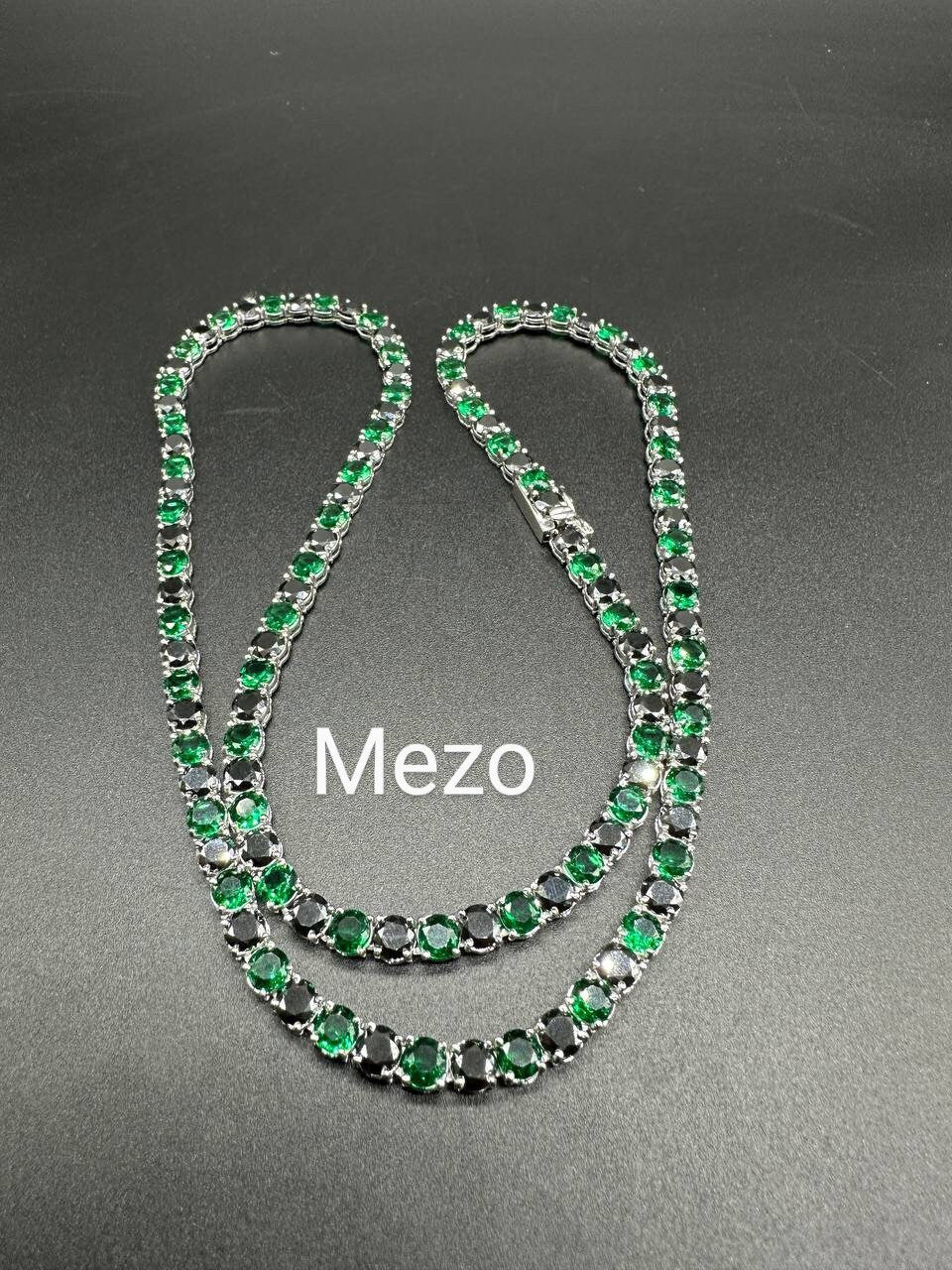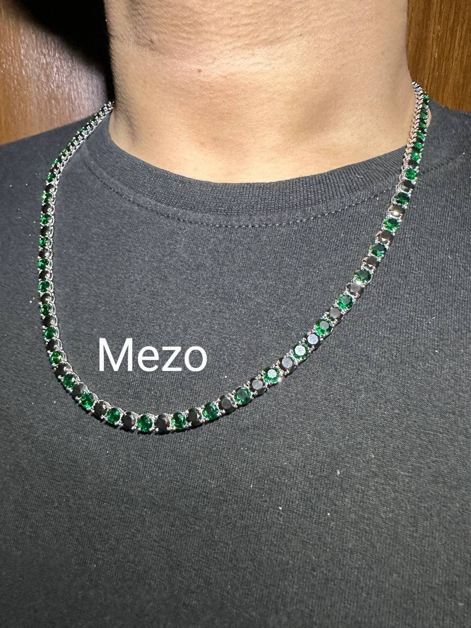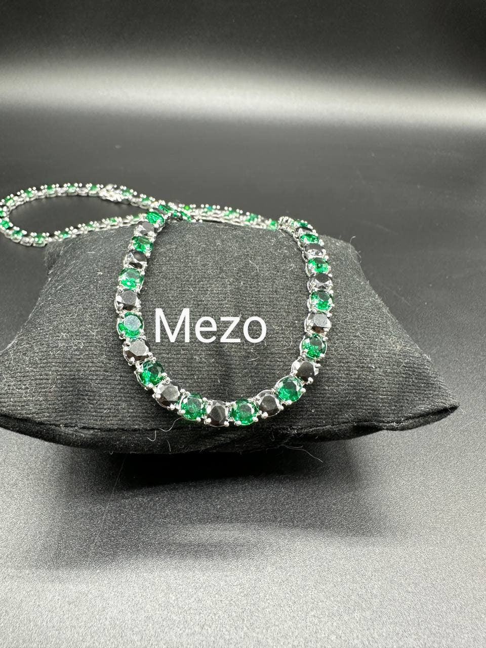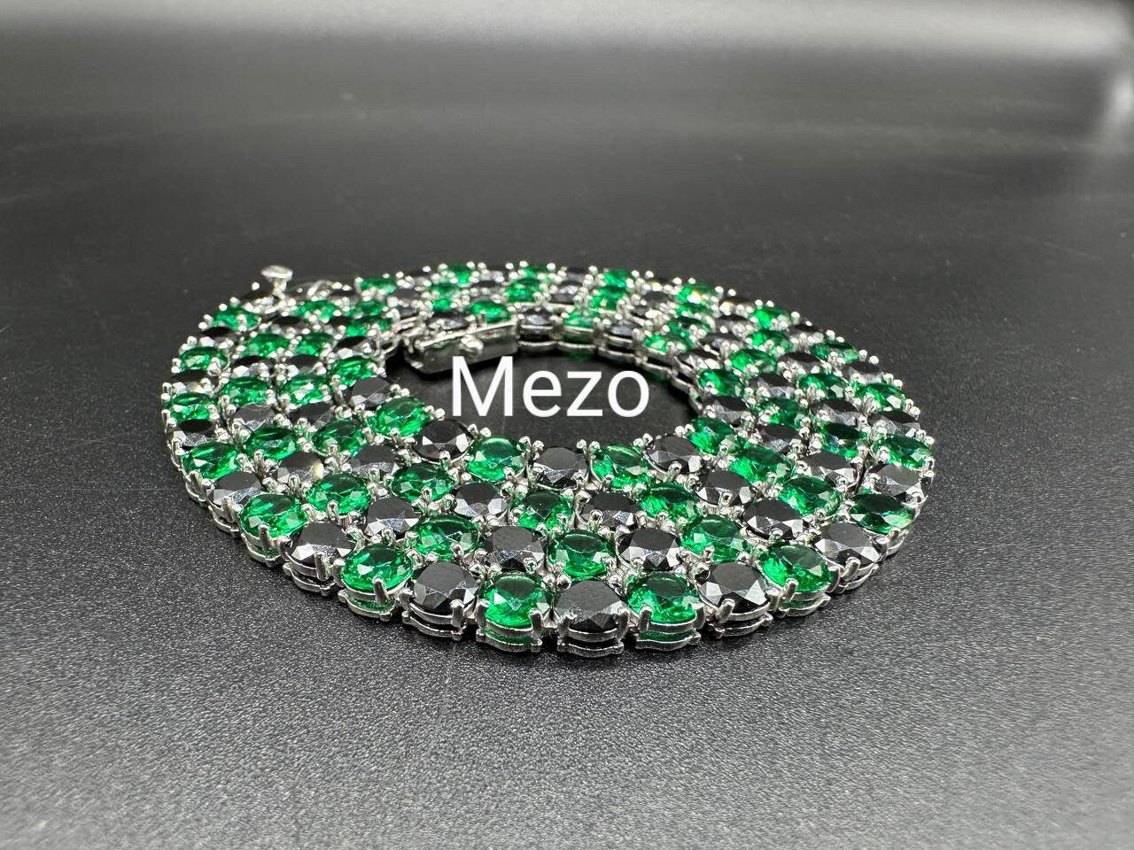 Emerald and black diamond Tennis Necklace,SOLID 14 k Gold Iced Out Tennis Chain Single Row 16"-30",Black and green unique Necklace