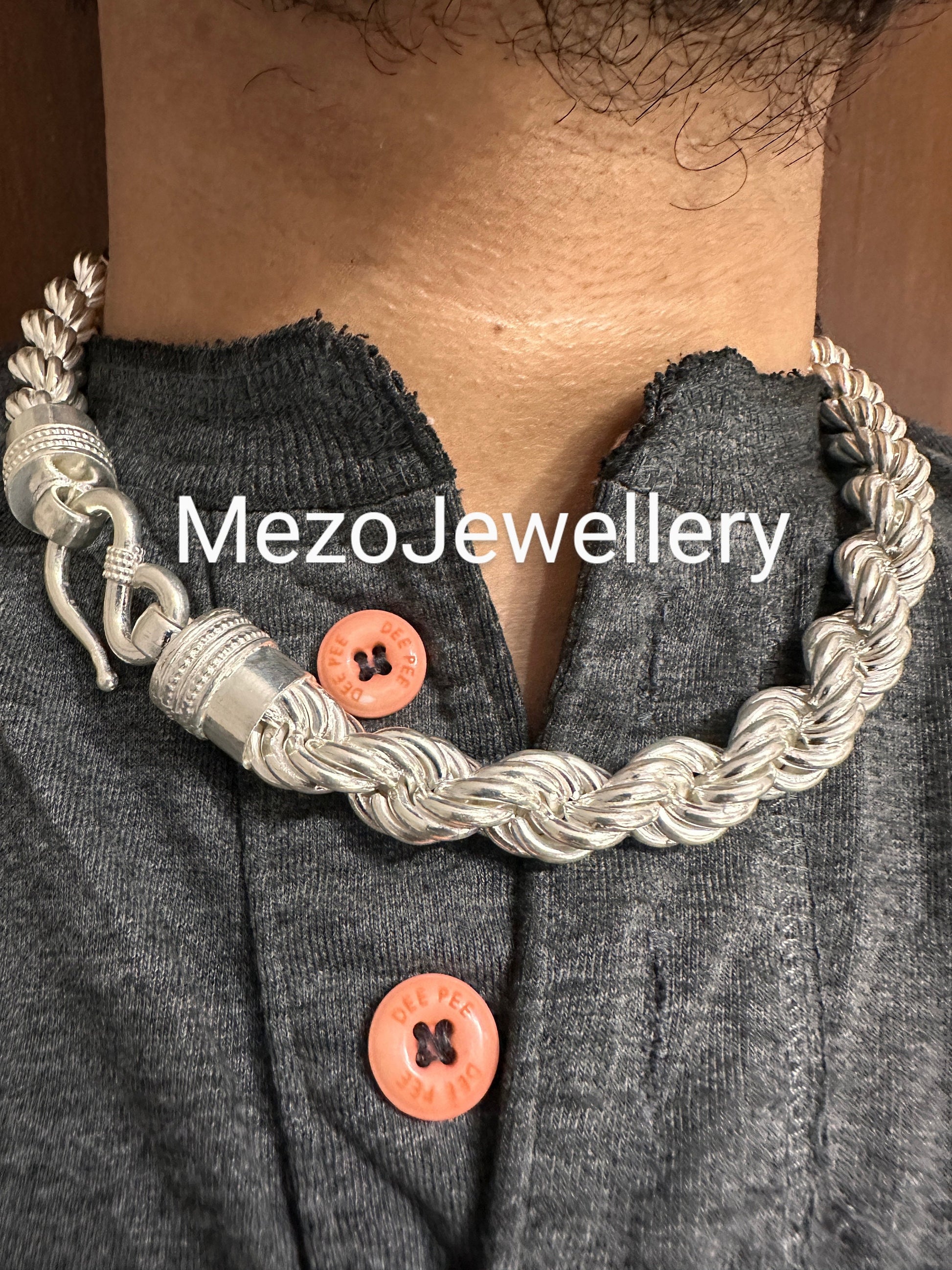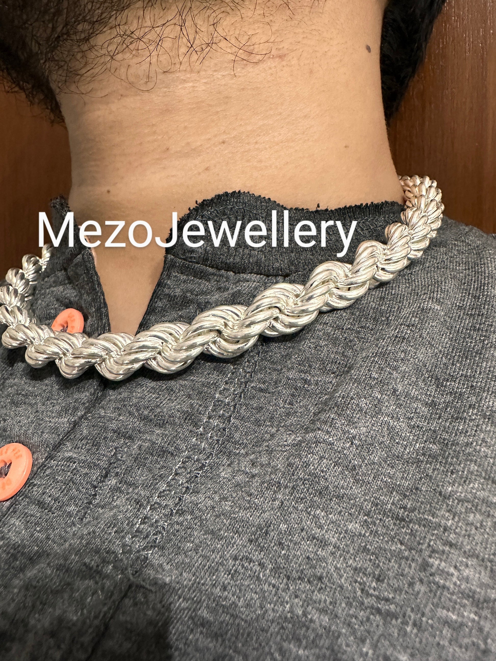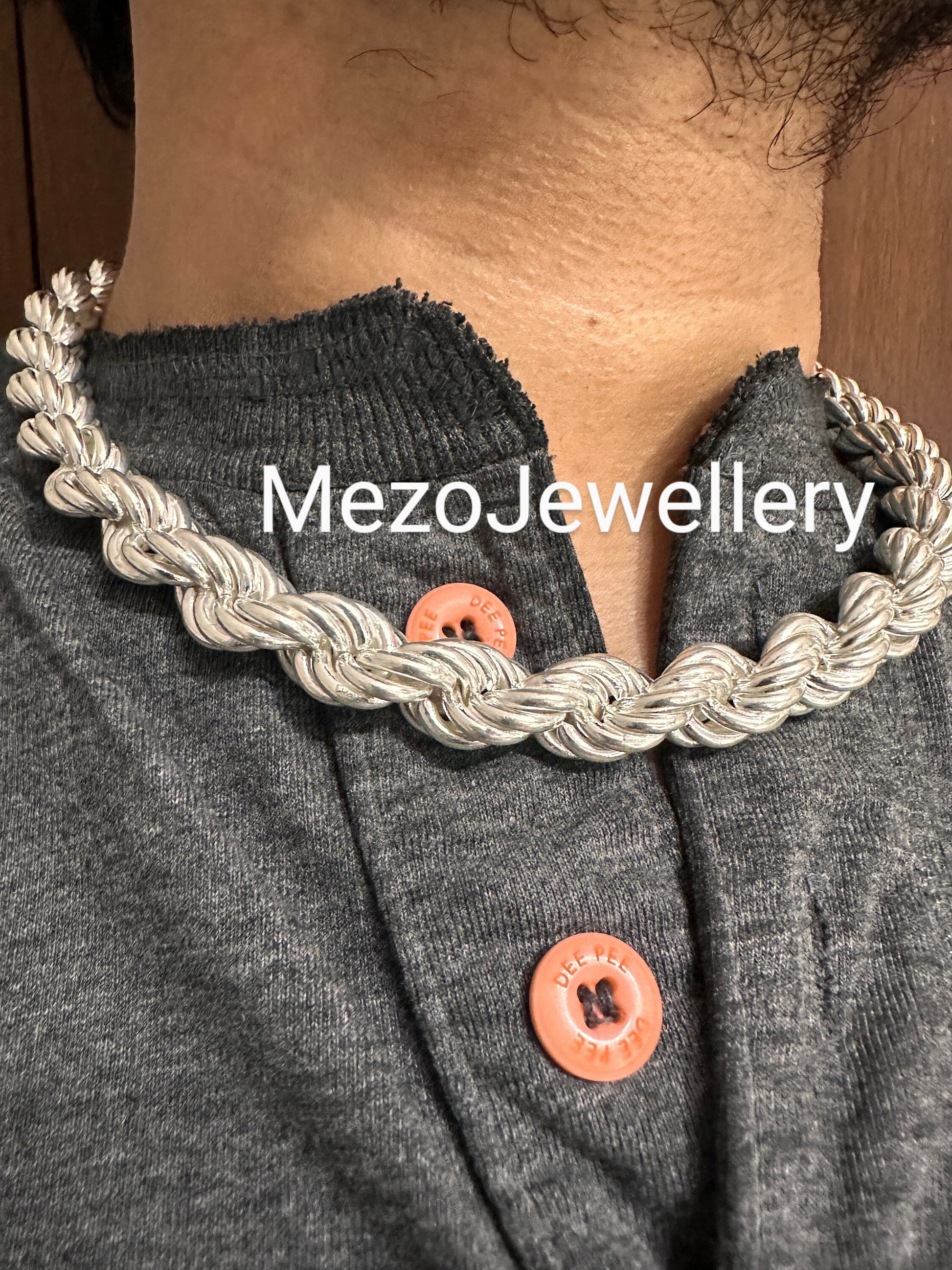 Heavy 925 Silver Twisted Rope Chain - Mens Silver Rope Chain Necklace - Mens Necklace - 16mm Silver Chain - Rapper Thick Chain Men's Jewelry