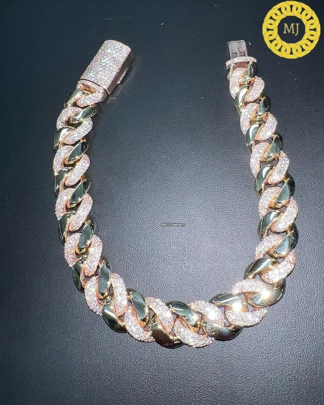 Heavy Solid 925 Sterling Silver Men's VVS1 Moissanite Diamonds Miami Cuban Curb Chain Anti-Tarnish 15 mm wide 16"-28" Inch" All Sizes ( Available Message For Size And MM sizes Price will Vary ) Fine Quality Box Lock Clasp, Moissanite studded Pass The Diamond Tester Test