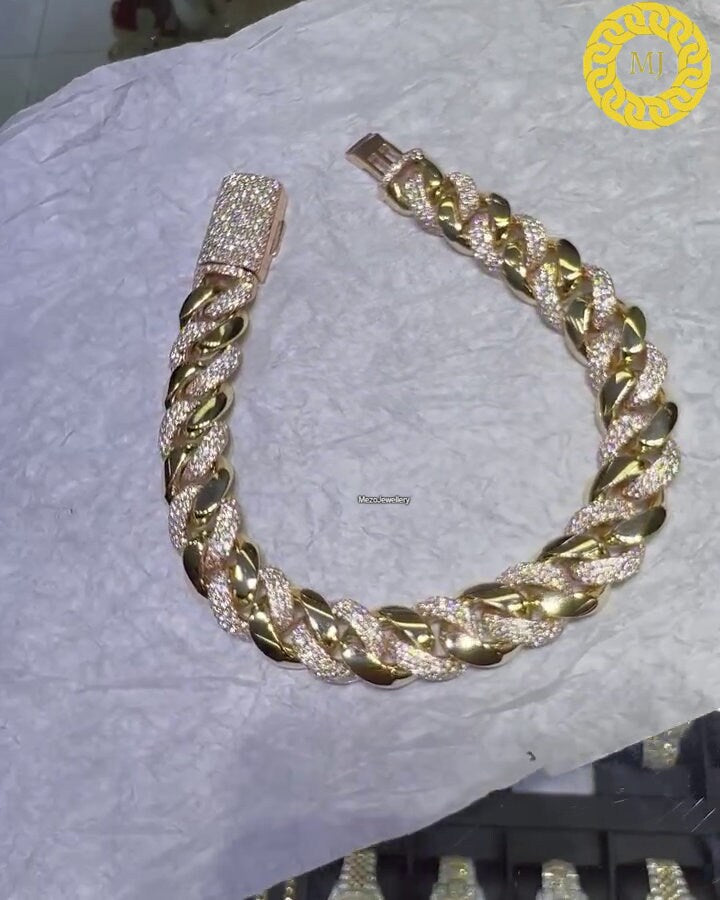 Heavy Quality | 15mm Icy Cuban Link Chain | VVS1 Quality Moissanite Diamond | 925 Sterling Silver | Gold Plated | Gift For Men and Women |