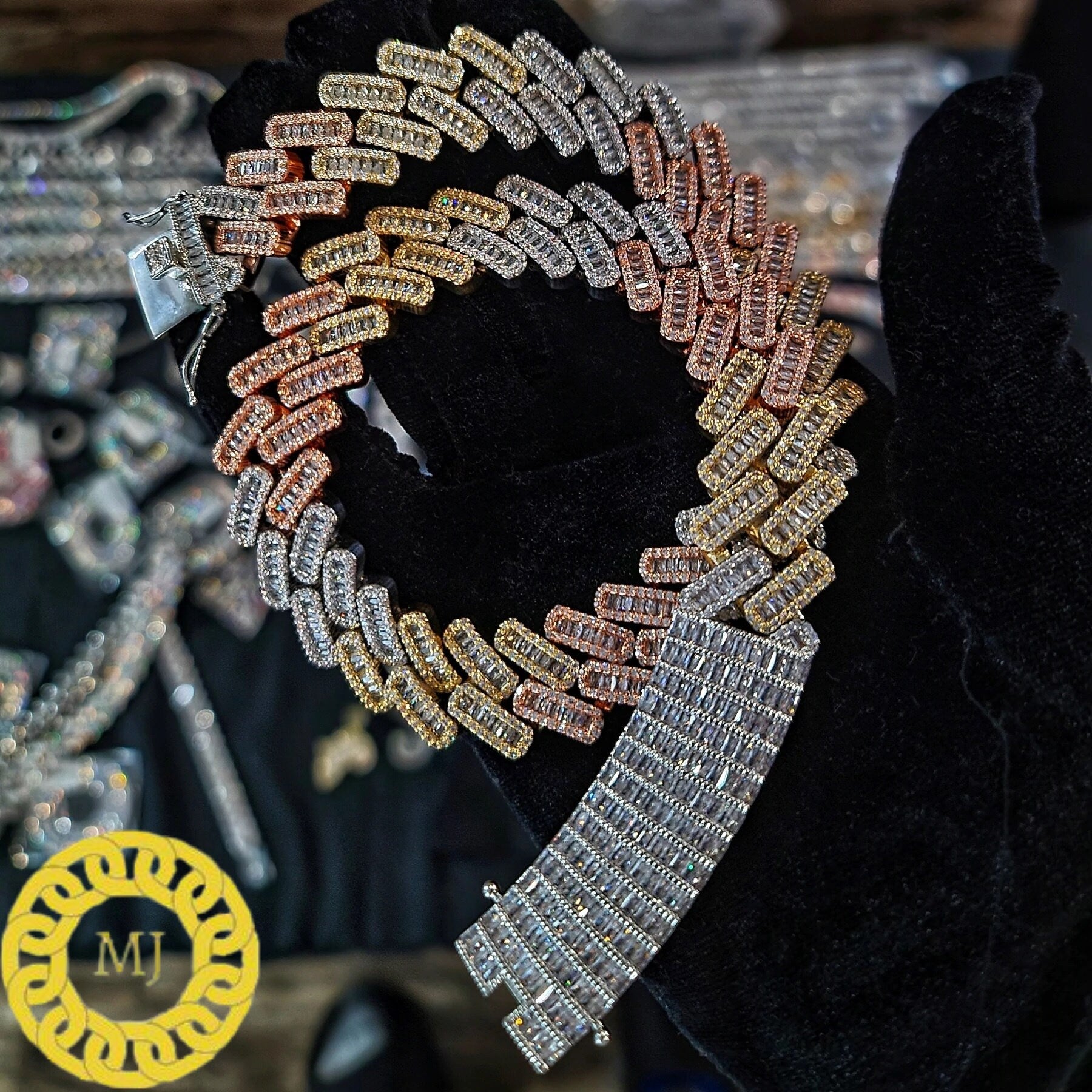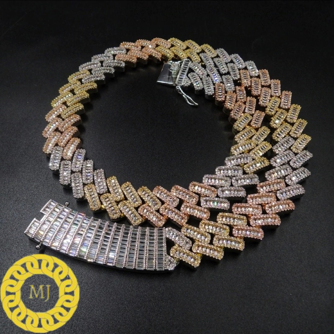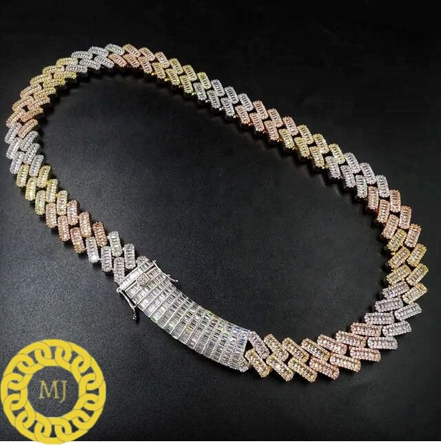 19mm Chandelier Baguette Iced Out Cuban Chain VS1 Moissanite Diamond With 14k White Gold Finished 925 , 16- 28'' ,Pass The Diamond Tester Inch" All Sizes ( Available Message For Size And MM sizes Price will Vary ) Fine Quality Box Lock Clasp, Moissanite studed Pass The Diamond Tester Test