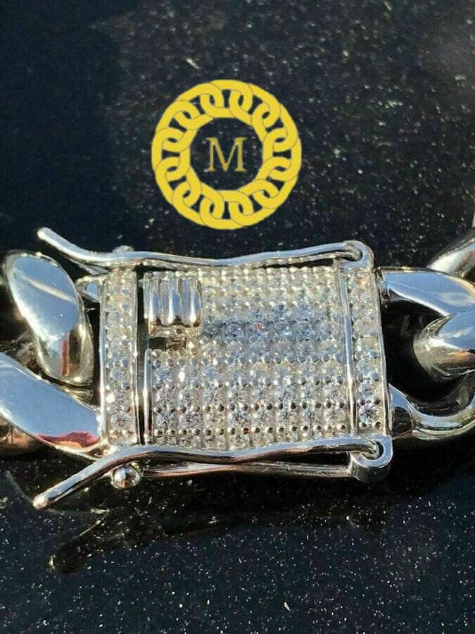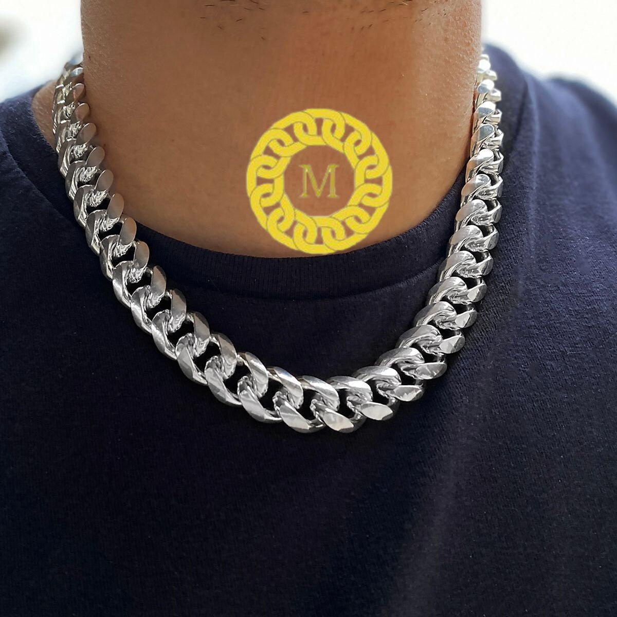 Heavy Solid 925 Sterling Silver Men's Miami Cuban curb Chain Necklace Anti-Tarnish, 14mm wide 18"-26" Inch Hop with Moissanite Diamond Clasp