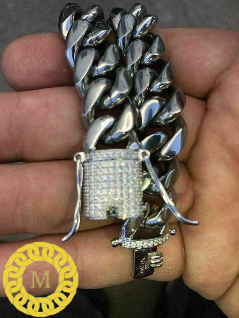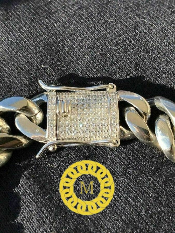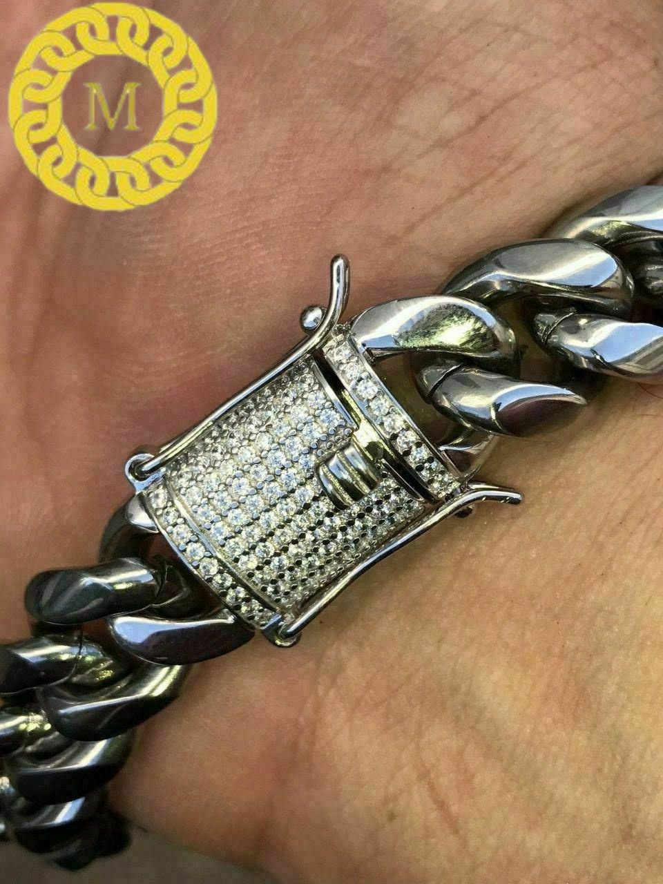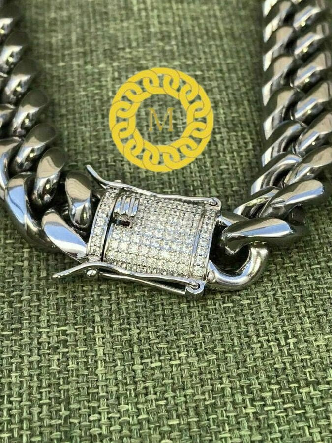 Moissanite Diamond Clasp Heavy Solid 925 Sterling Silver Men's Miami Cuban curb Chain Necklace Anti-Tarnish,14mm wide 18"-26" Inch Hop with Fine quality Box Clasp, Cuban Tight Curb Miami Chain