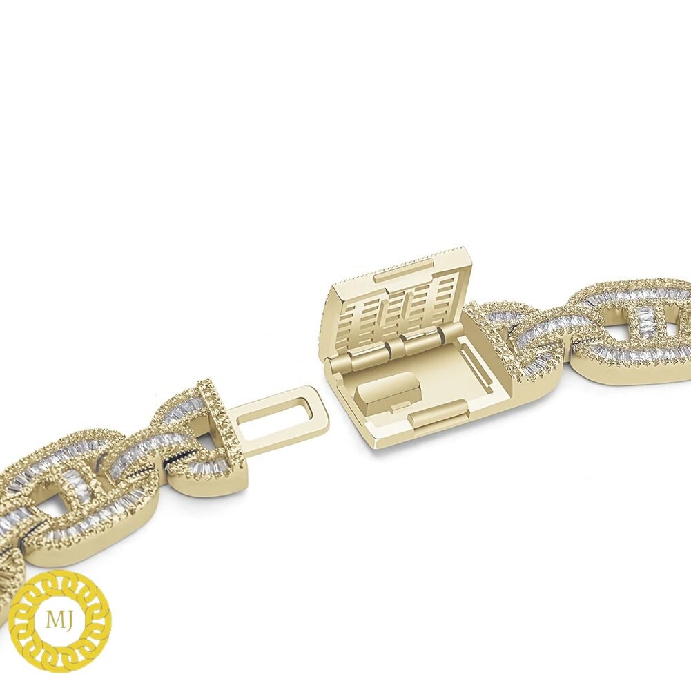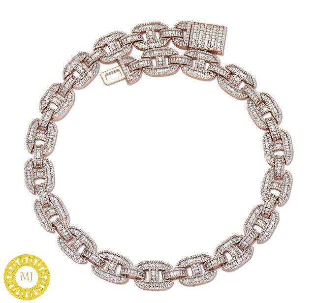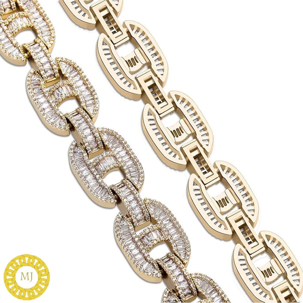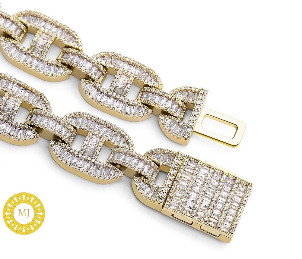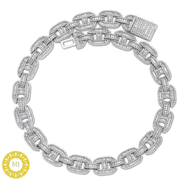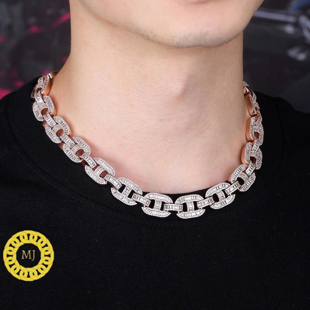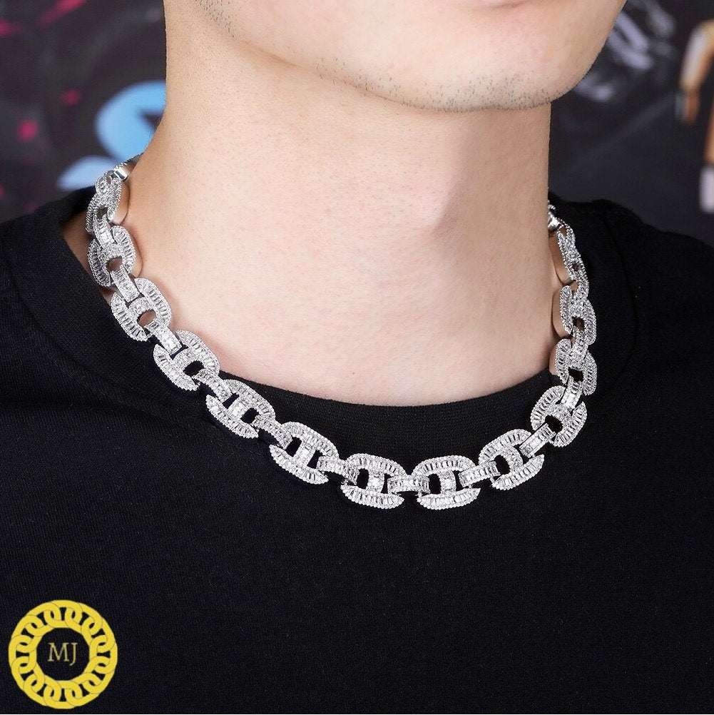 Heavy Solid 925 Sterling Silver Men's VVS1 Baguette Moissanite Diamonds Chain-15mm Flooded Ice True Baguette Stone Baguette Gucci Link Chain