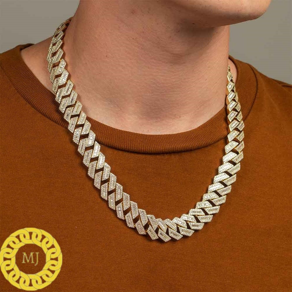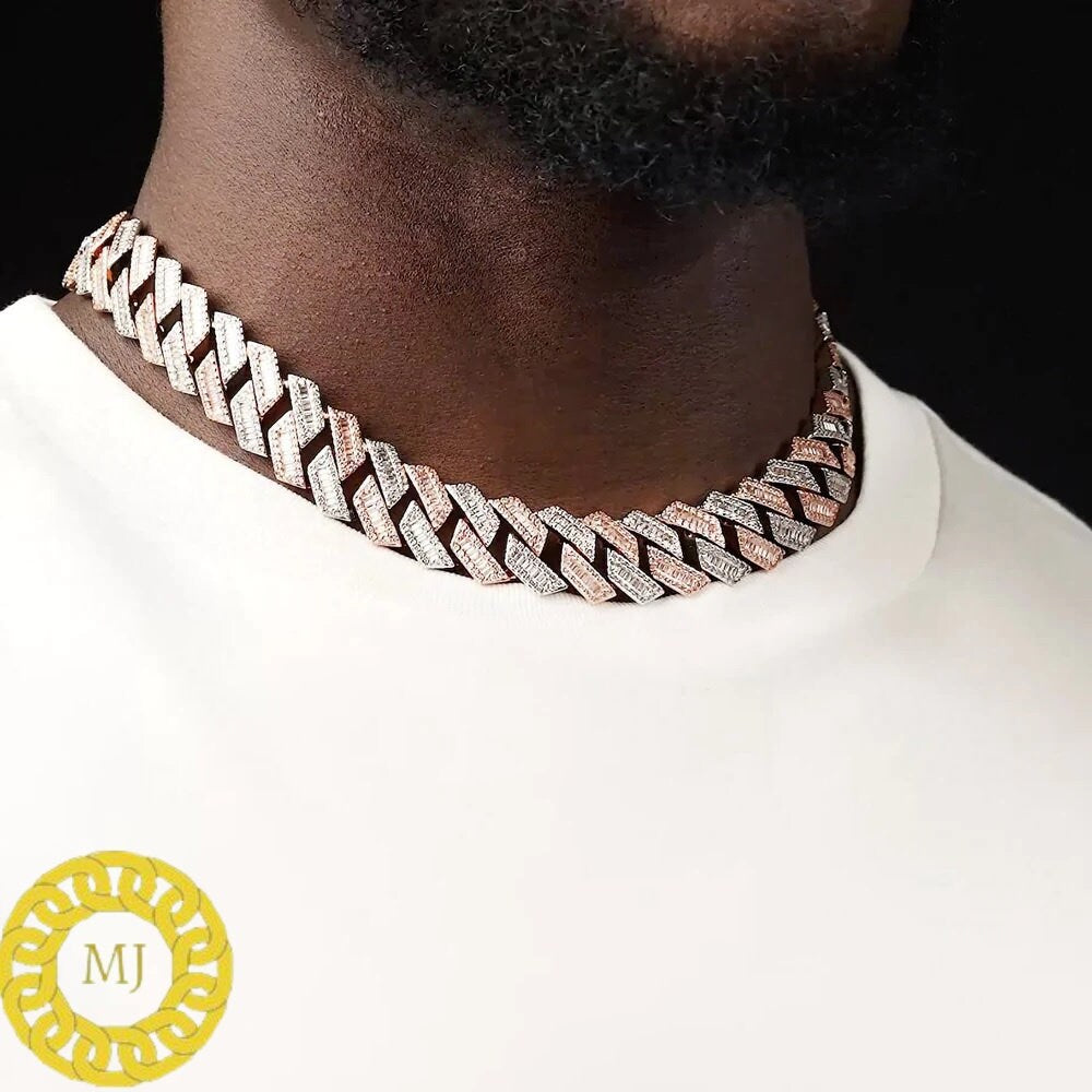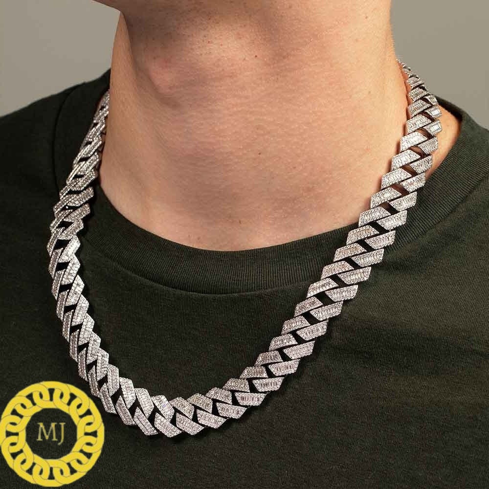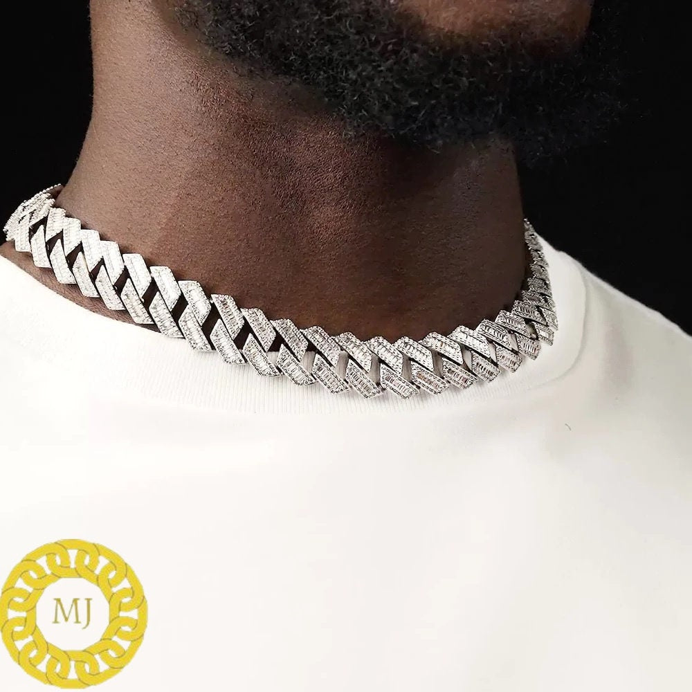 Heavy Solid 925 Sterling Silver Men's VVS1 Moissanite Baguette Studded Cuban Chain,Icedout Rapper chains,18mm wide, Quality Box Clasp