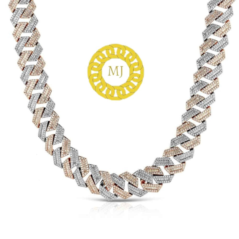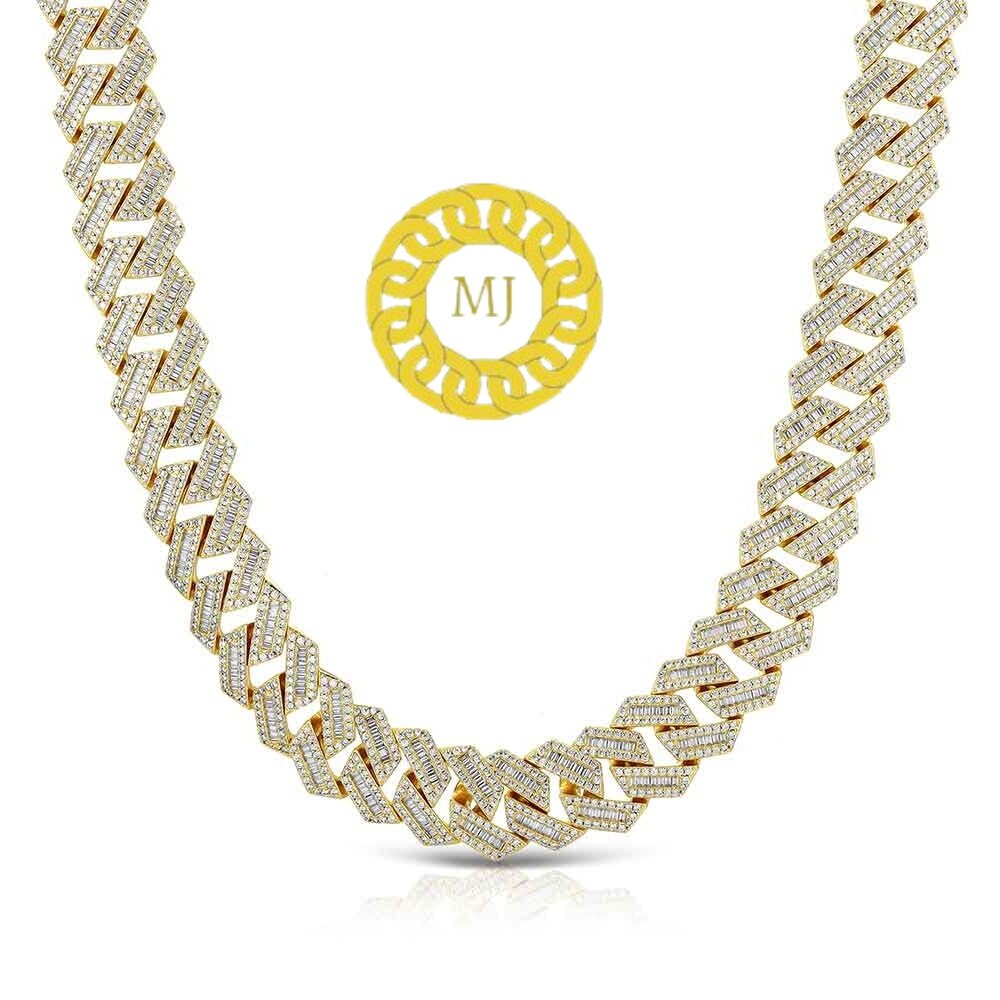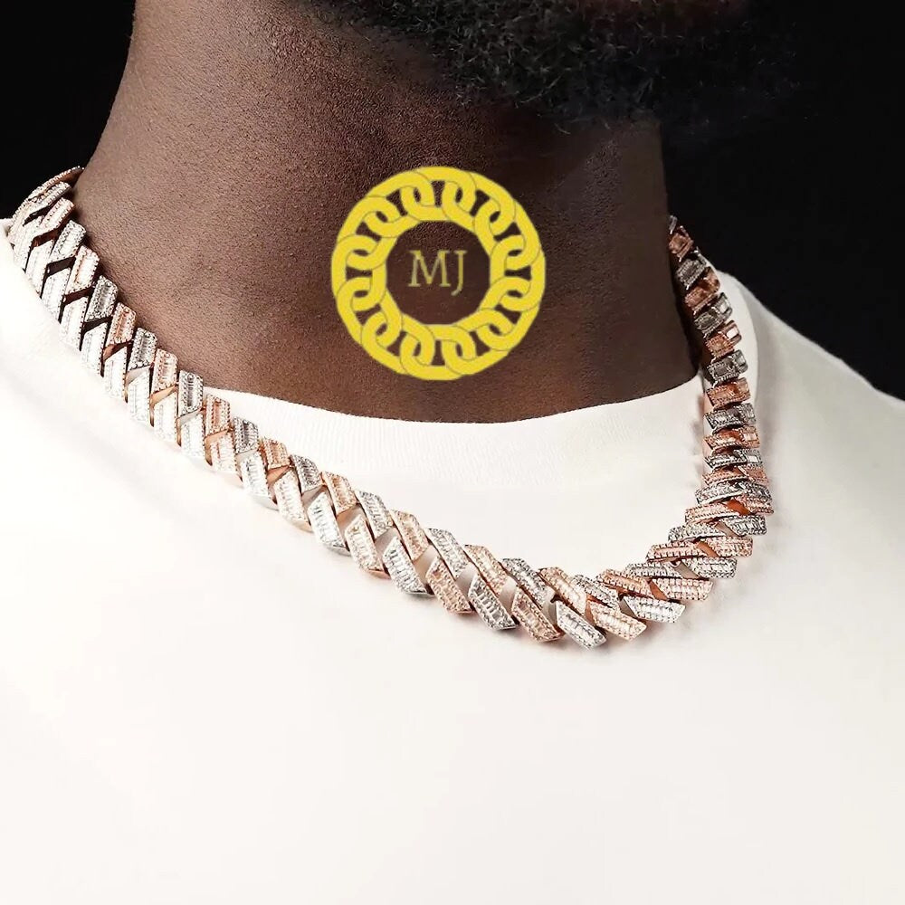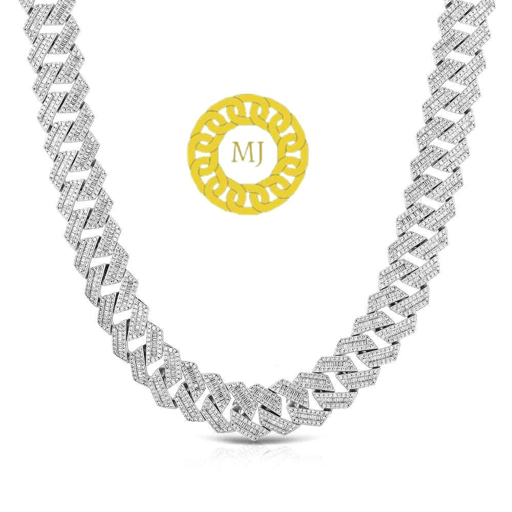 Heavy Solid 925 Sterling Silver Men's VVS1 Moissanite Baguette Studded Cuban Chain,Icedout Rapper chains,18mm wide, Quality Box Clasp