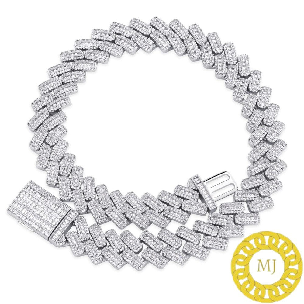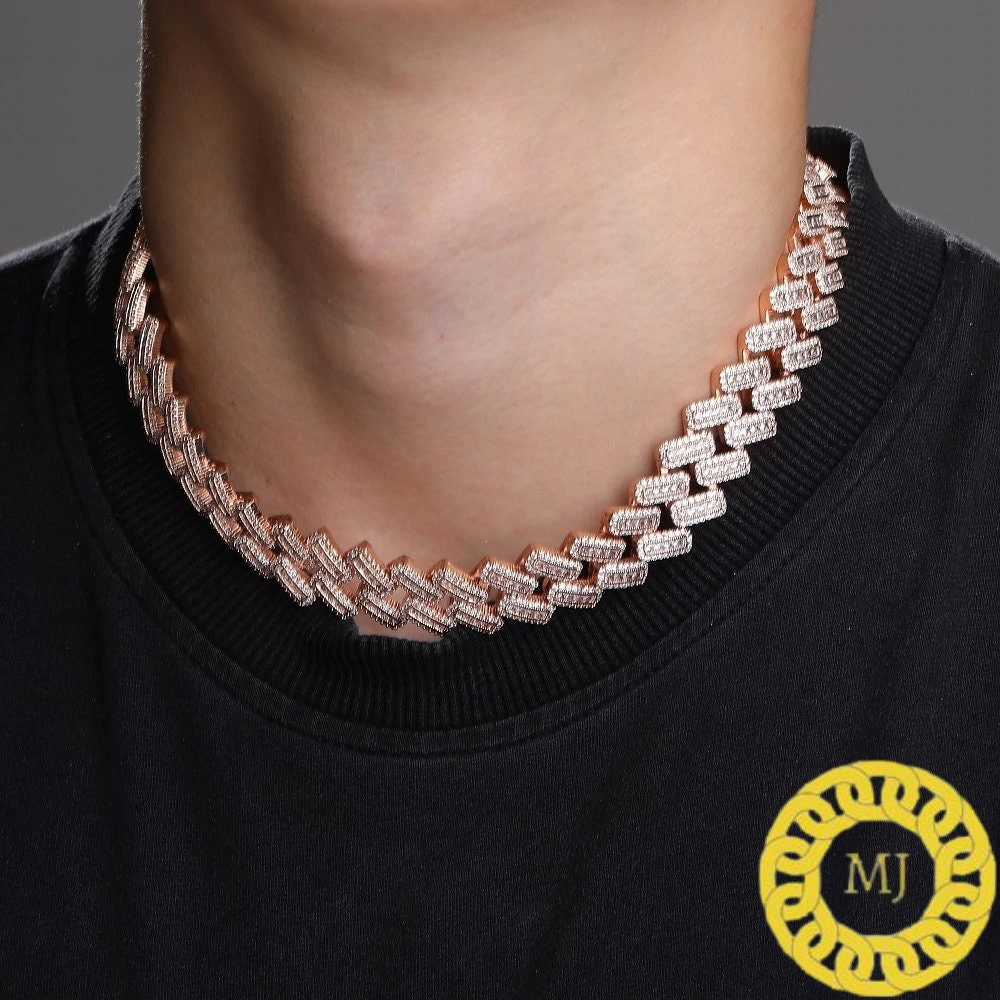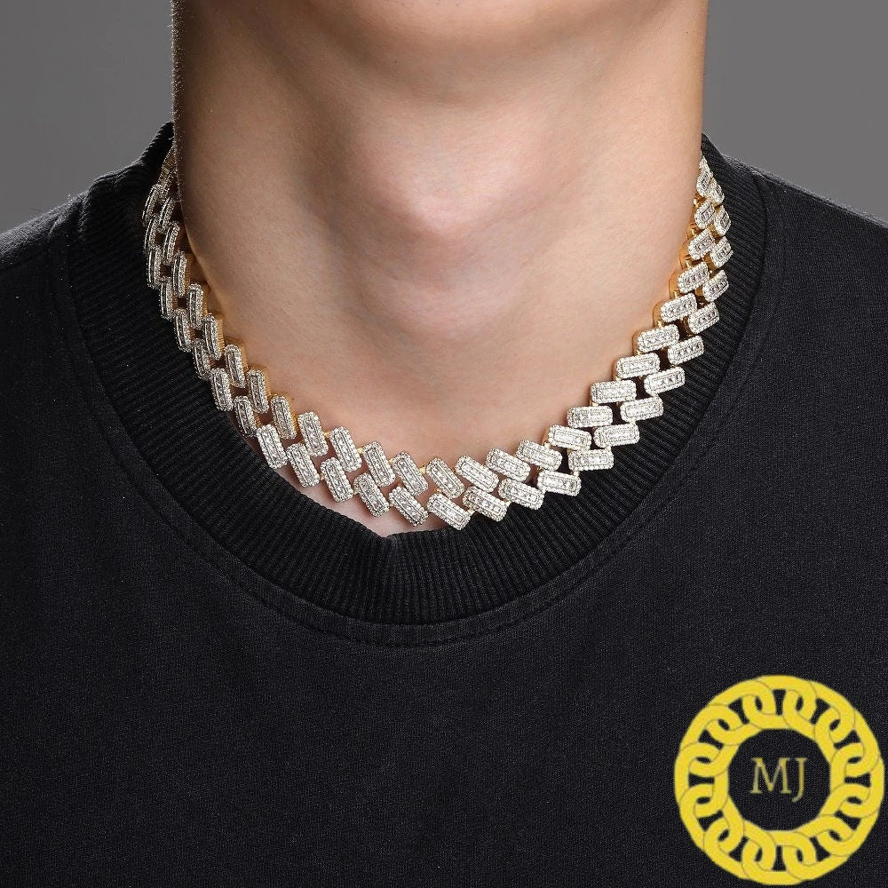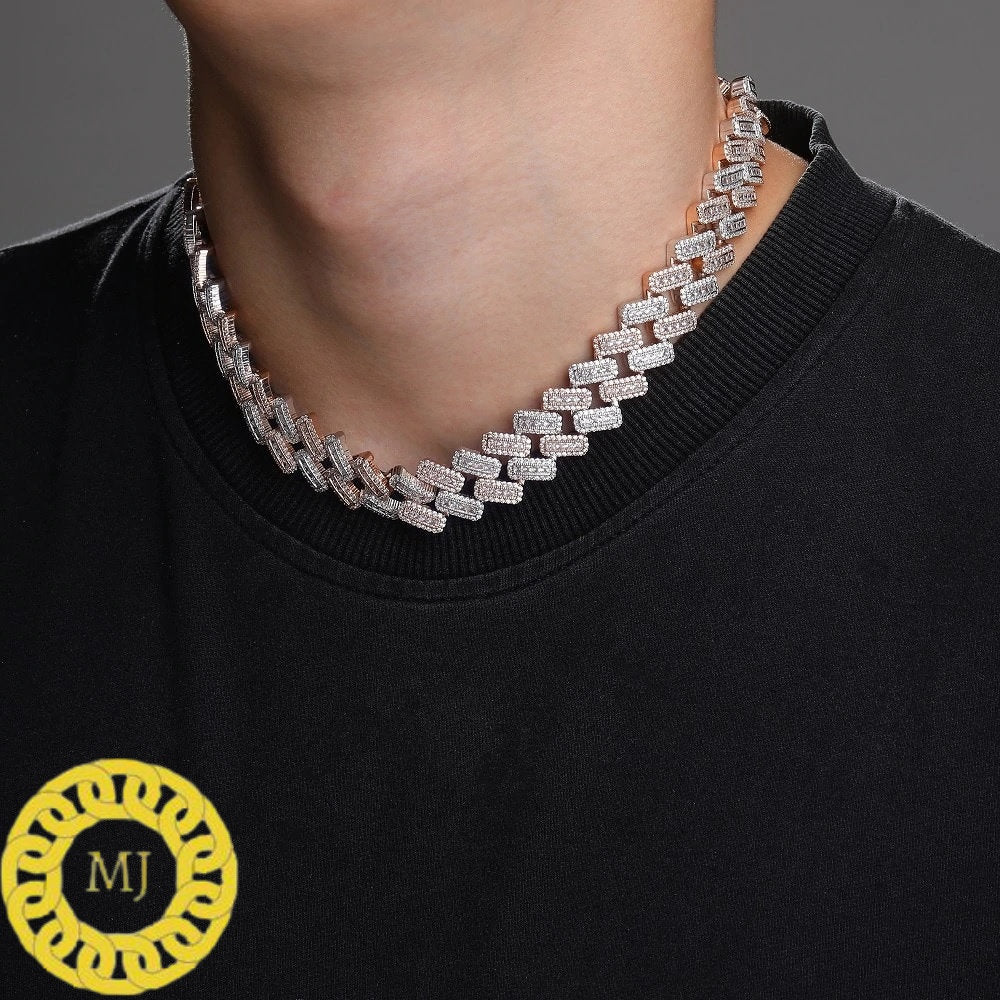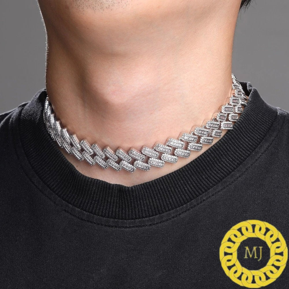 Heavy Solid 925 Sterling Silver Men's VVS1 Moissanite Baguette Studded Cuban Chain,Icedout Rapper chains,20mm wide, Quality Box Clasp