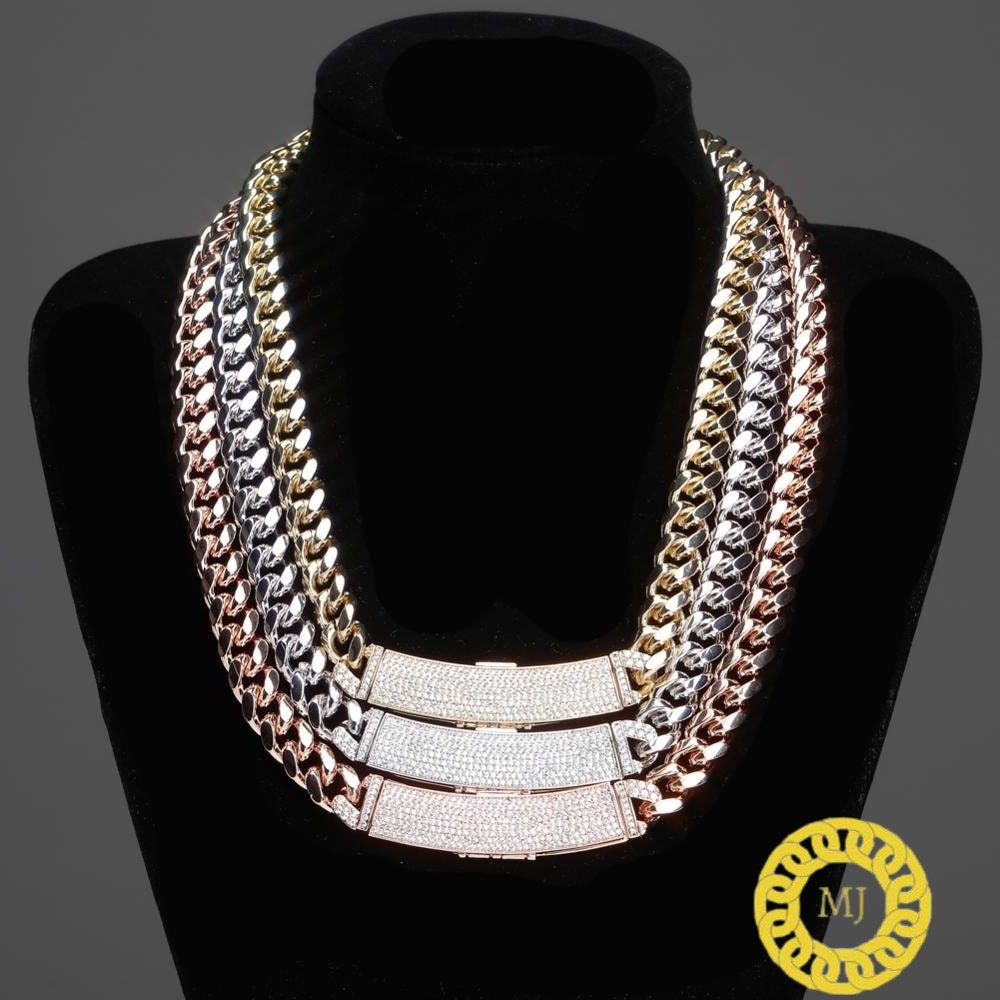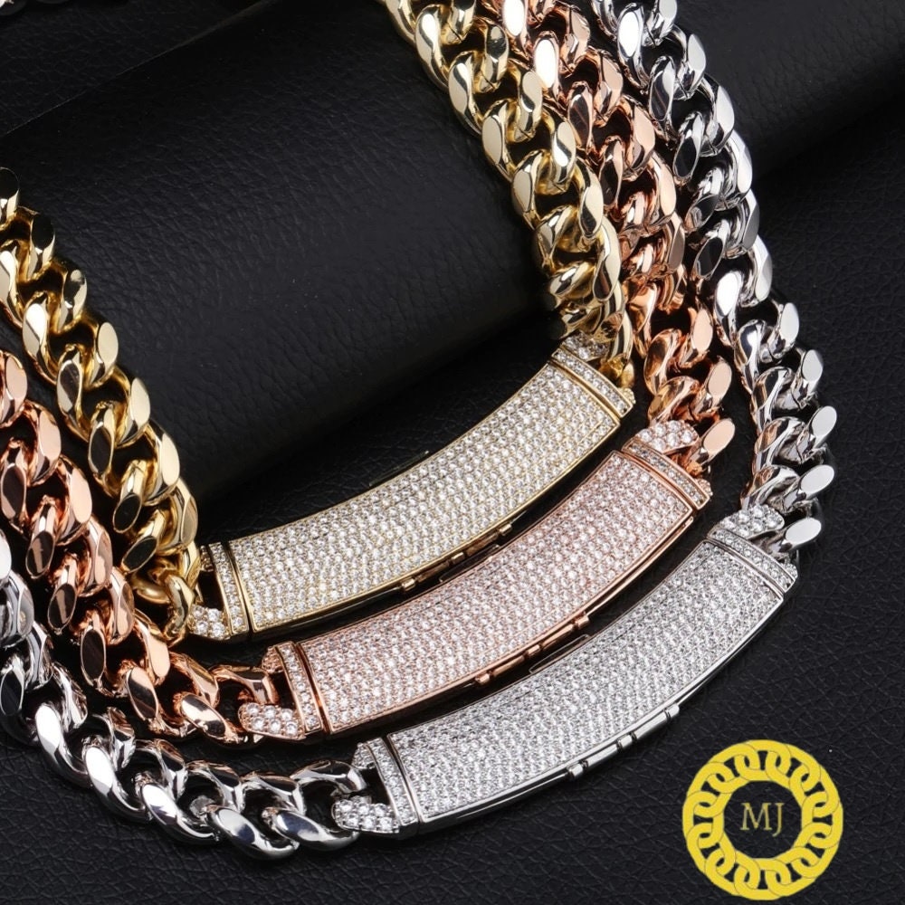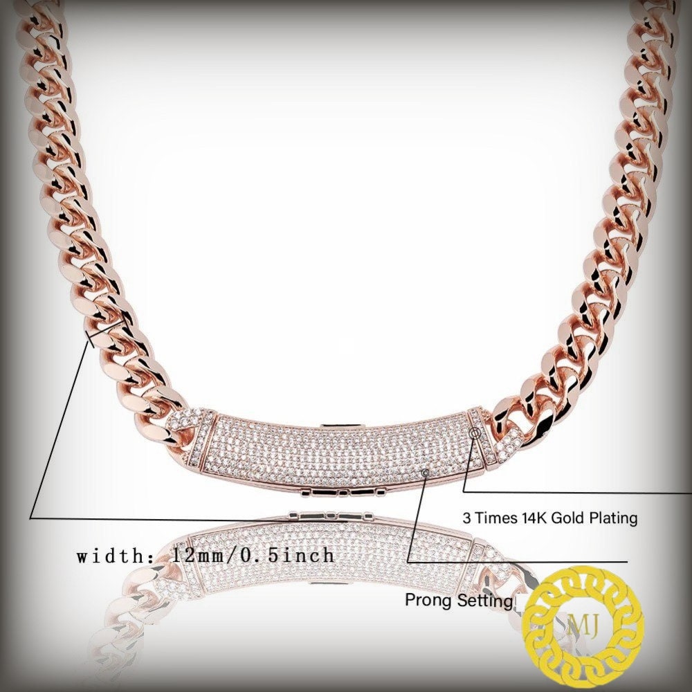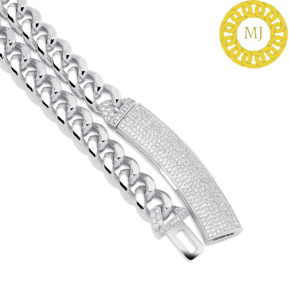 Heavy Solid 925 Sterling Silver Men's VVS1 Moissanite Diamonds Miami Cuban Curb Chain Anti-Tarnish 12 mm wide 16"-28" Inch" All Sizes ( Available Message For Size And MM sizes Price will Vary ) Fine Quality Box Lock Clasp, Moissanite studed Pass The Diamond Tester Test