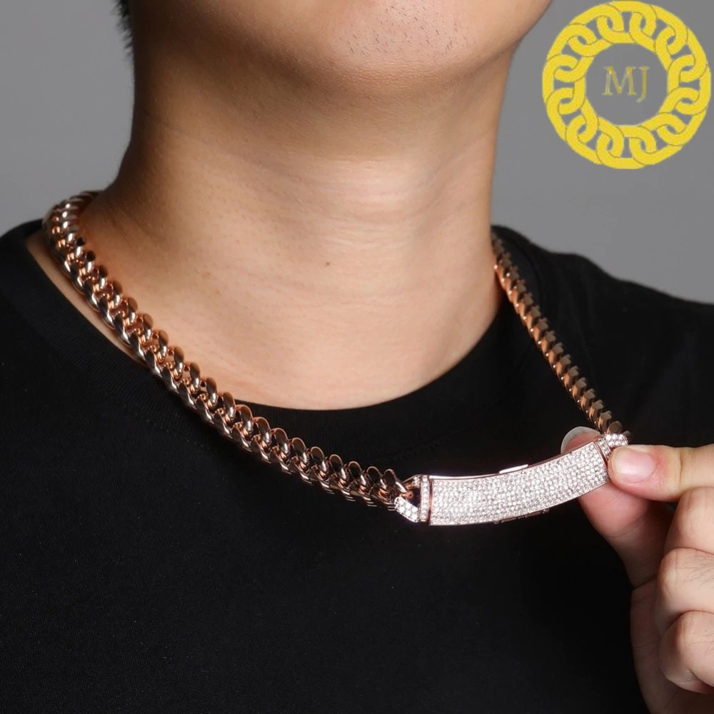 Heavy Solid 925 Sterling Silver Men's VVS1 Moissanite Diamonds Studded Cuban Chain,12mm Moissanite long buckle Cuban chain,Quality Box Clasp