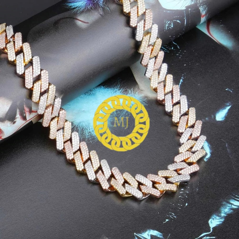 Heavy Solid 925 Sterling Silver Men's VVS1 Moissanite Diamonds Studded Cuban Chain,Icedout Rapper chains,20mm wide, Quality Box Clasp