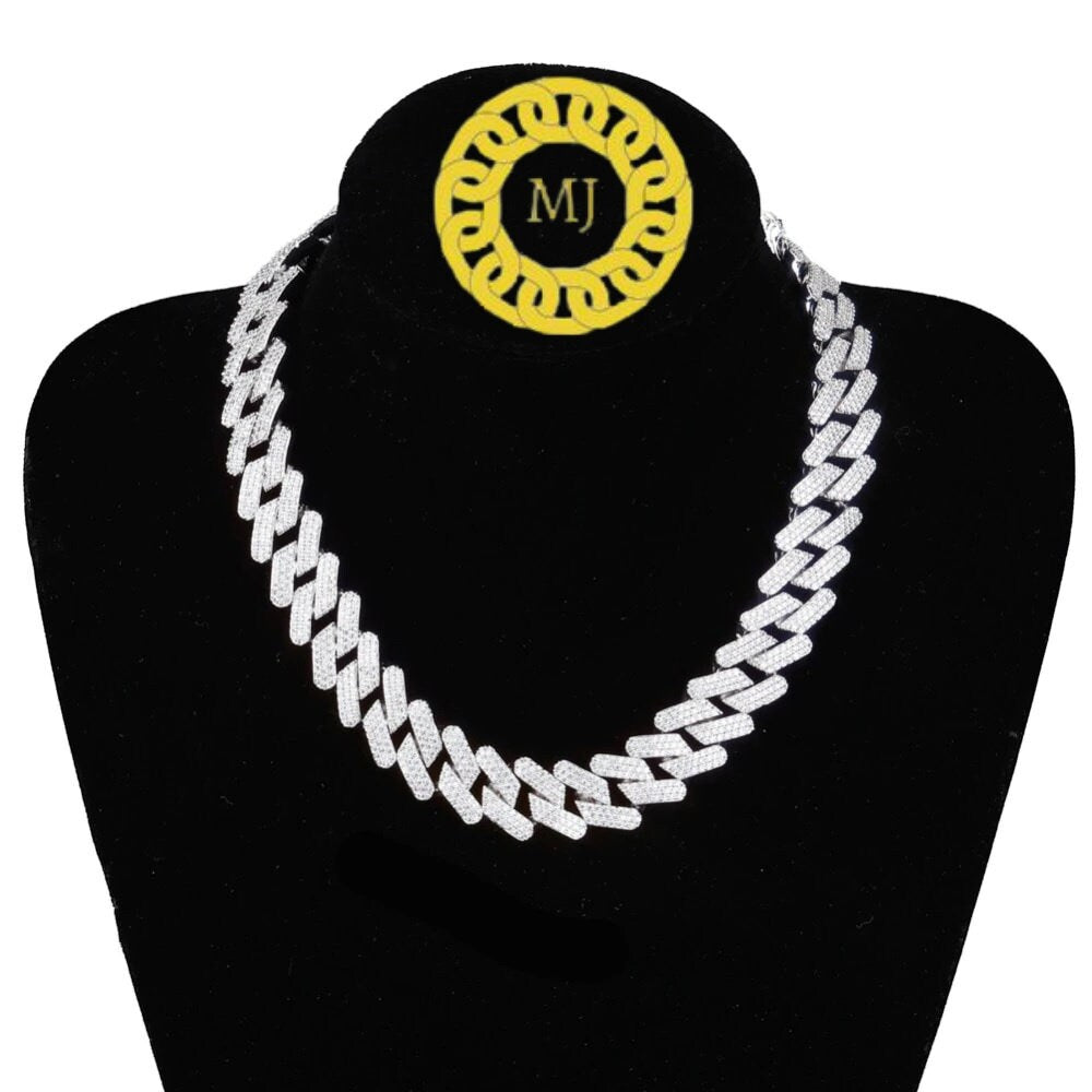 Heavy Solid 925 Sterling Silver Men's VVS1 Moissanite Diamonds Miami Cuban Curb Chain Anti-Tarnish 20 mm wide 16"-28" Inch" All Sizes ( Available Message For Size And MM sizes Price will Vary ) Fine Quality Box Lock Clasp, Moissanite studed Pass The Diamond Tester Test