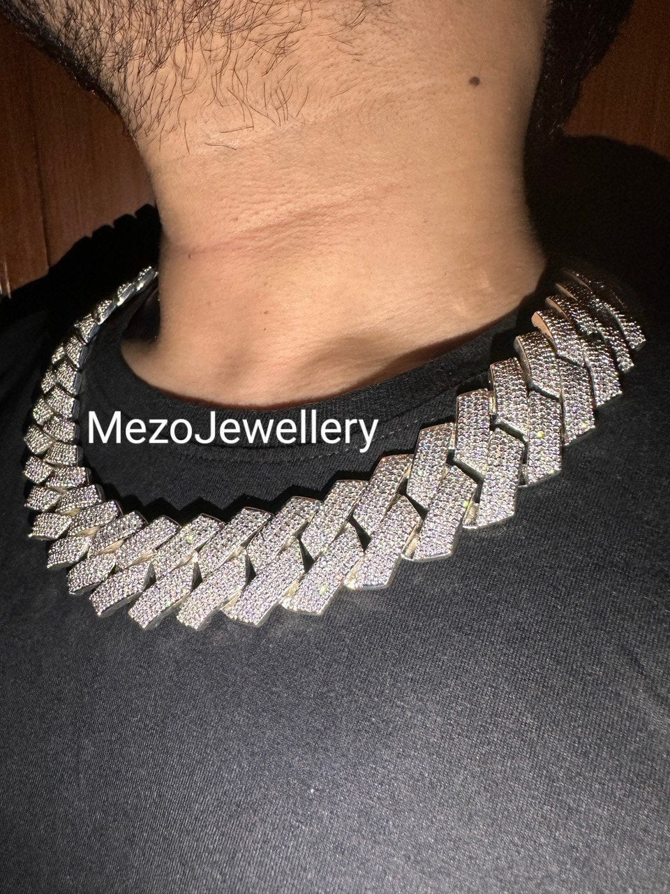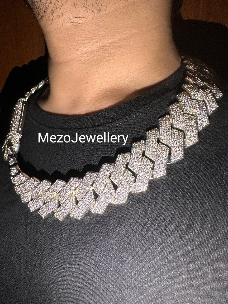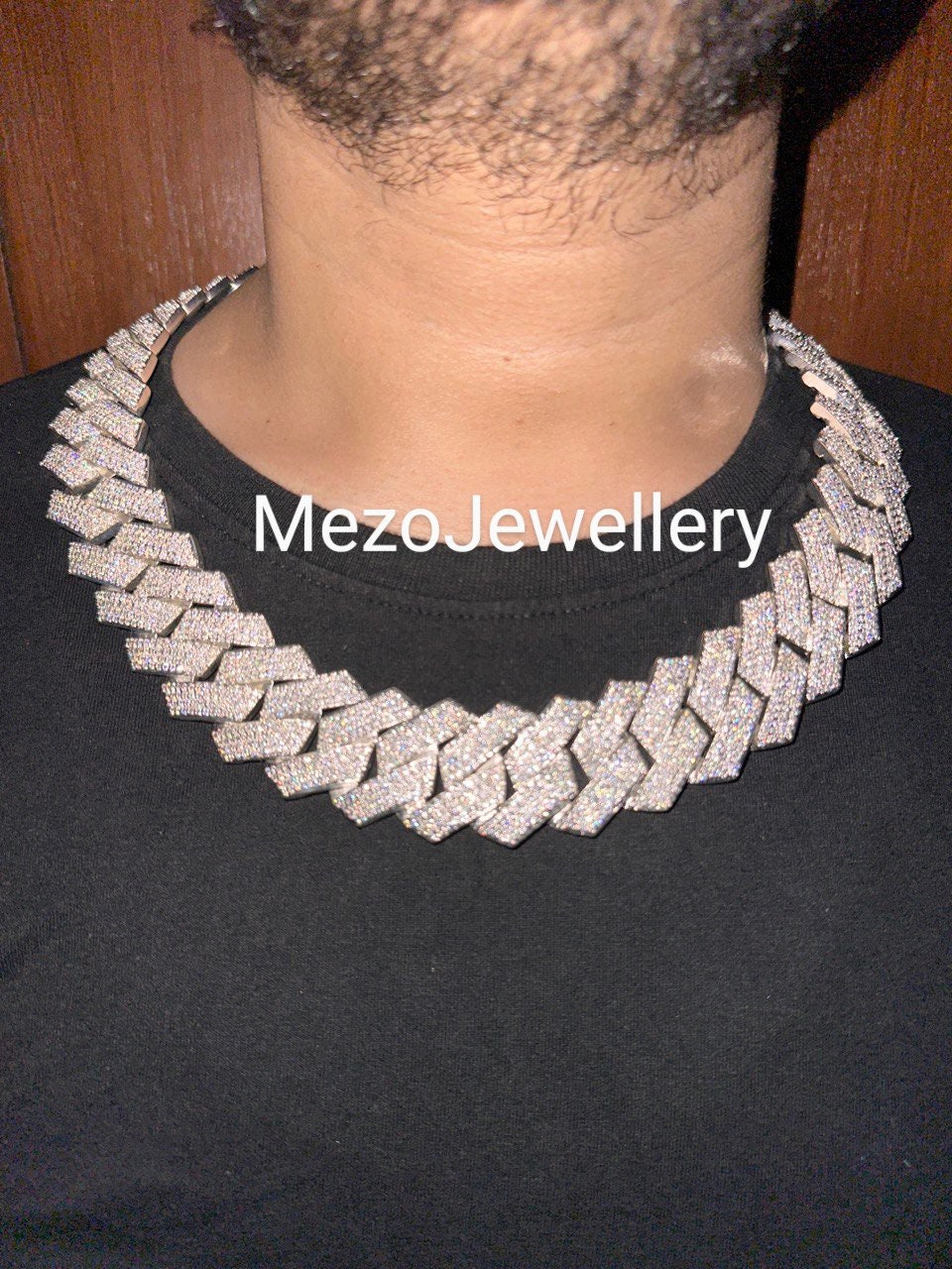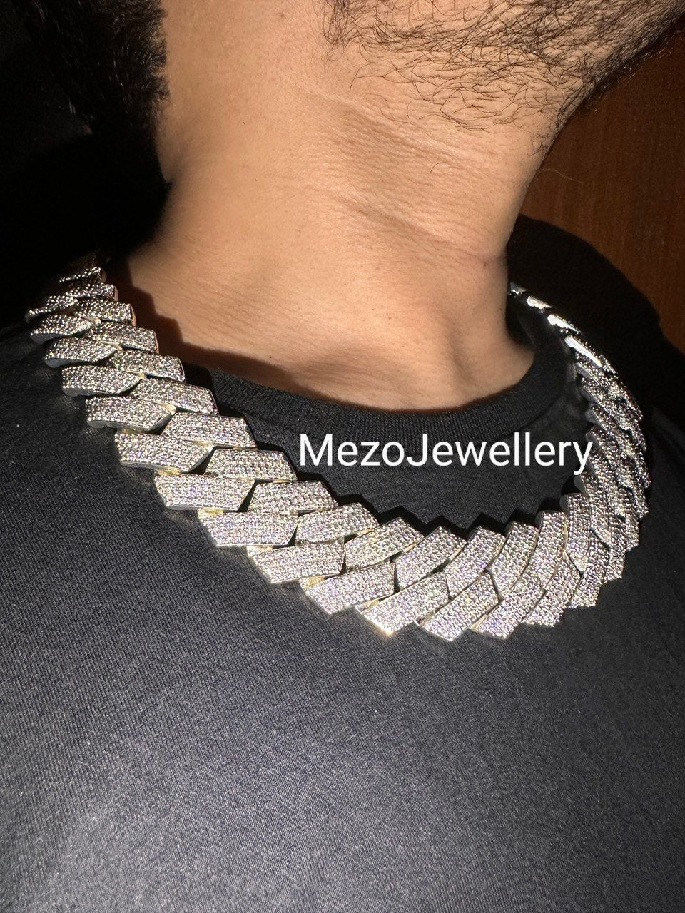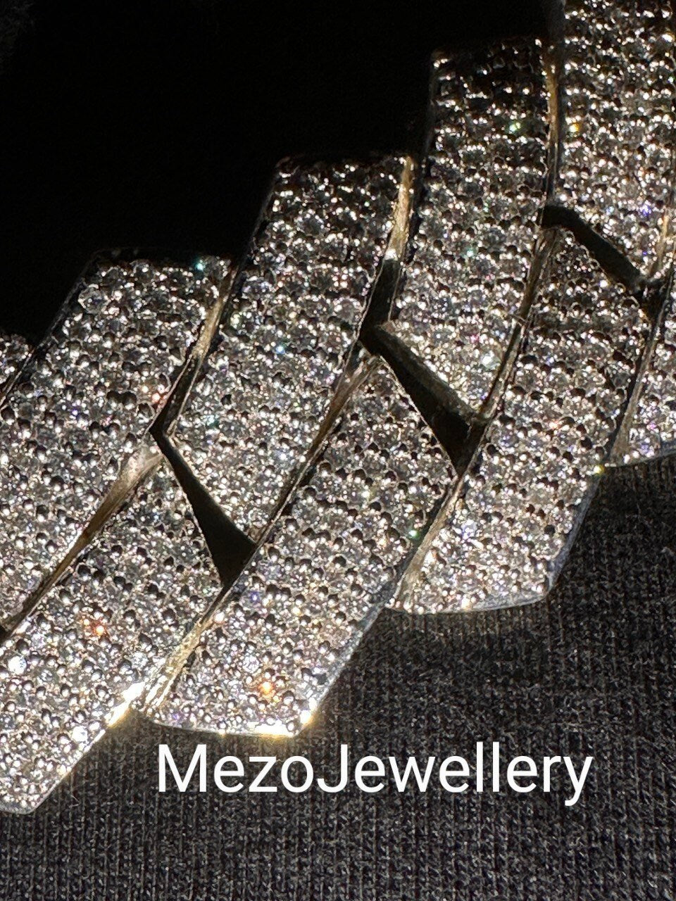 Heavy Solid 925 Sterling Silver Men's VVS1 Moissanite Diamonds Studded Cuban Chain,Icedout Rapper chains,35mm wide, Quality Box Clasp