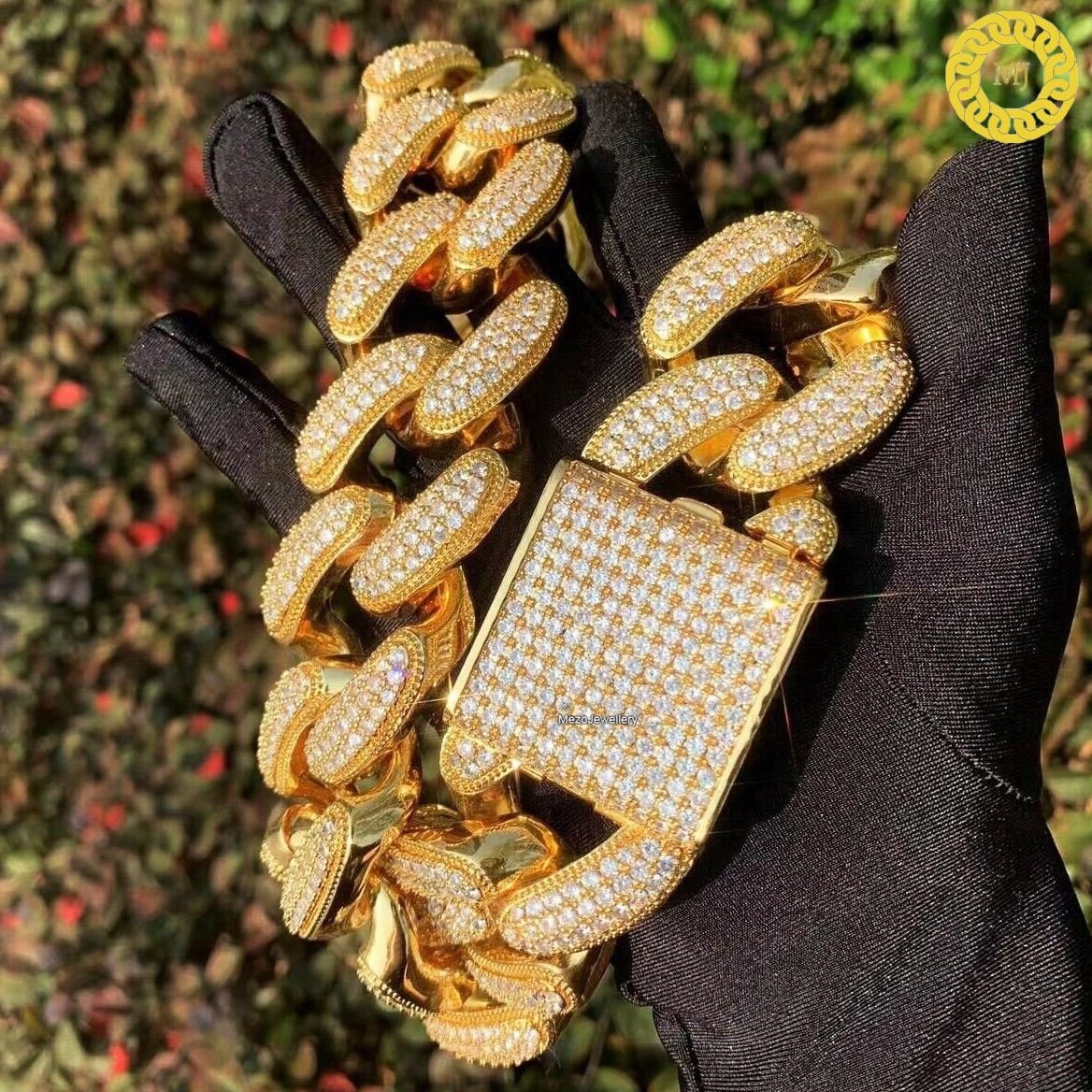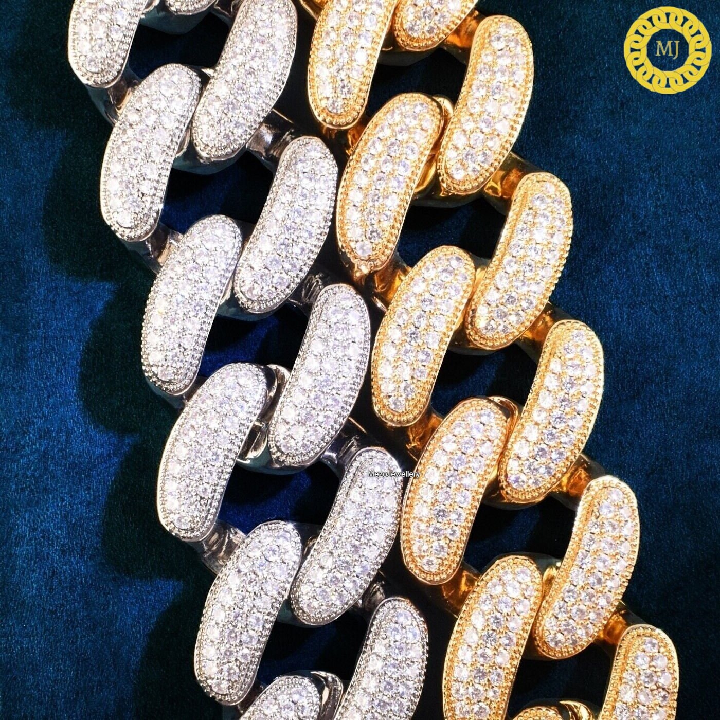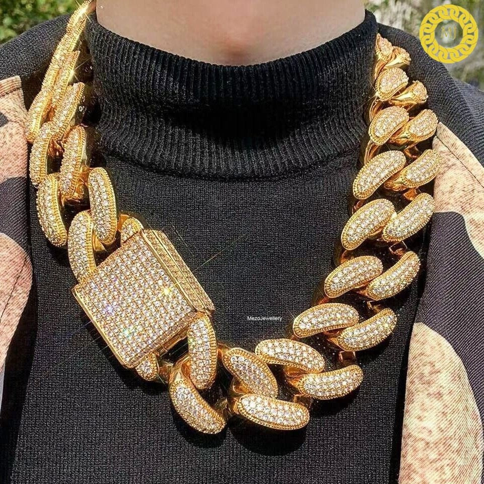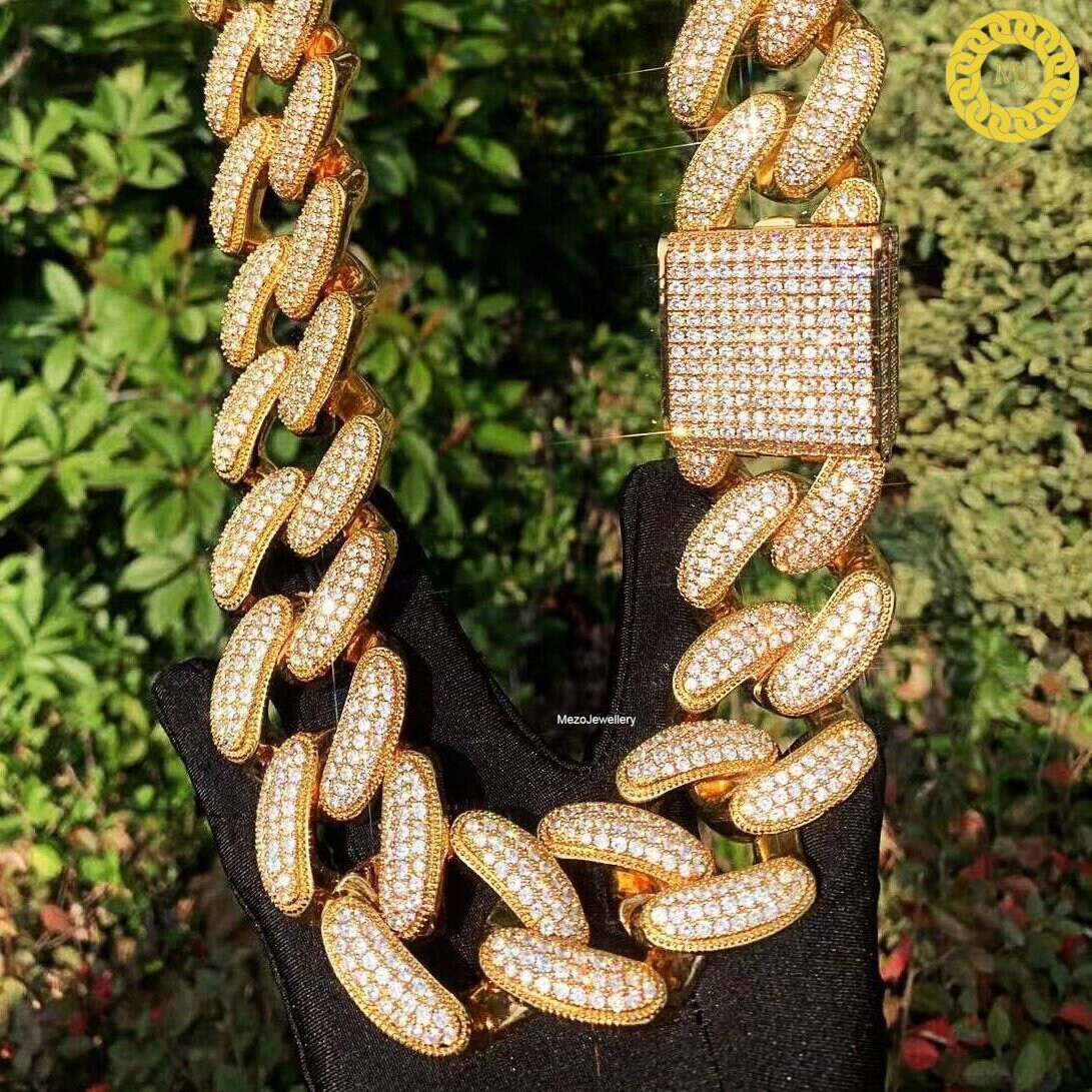 Heavy Solid 925 Sterling Silver Men's VVS1 Moissanite Diamonds Studded Cuban Chain,Icedout Rapper chains,40mm wide, Icy Quality Box Clasp