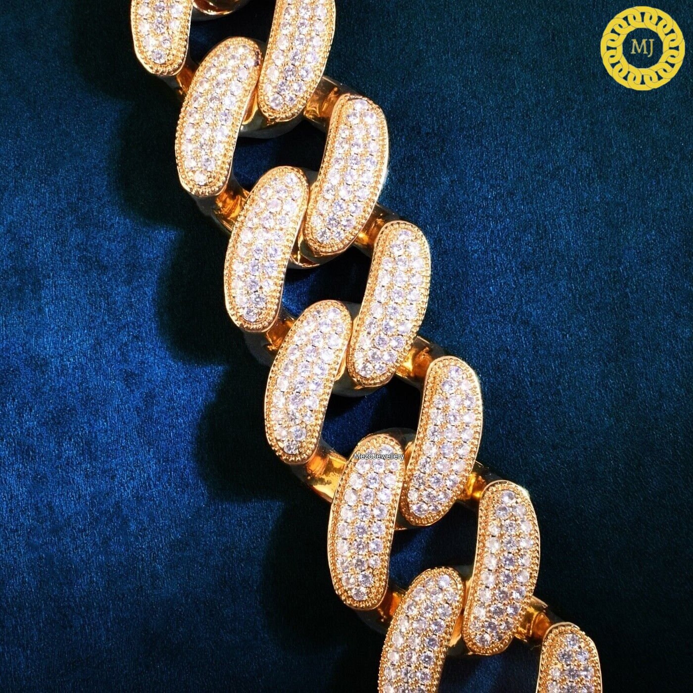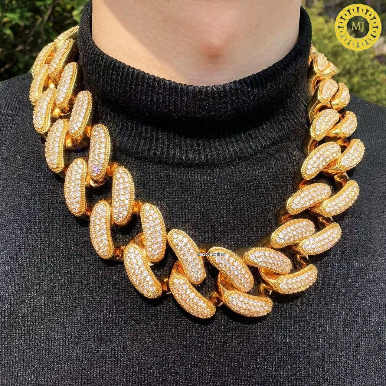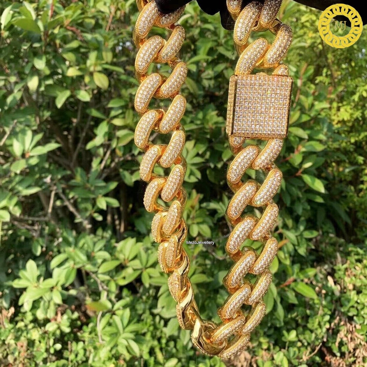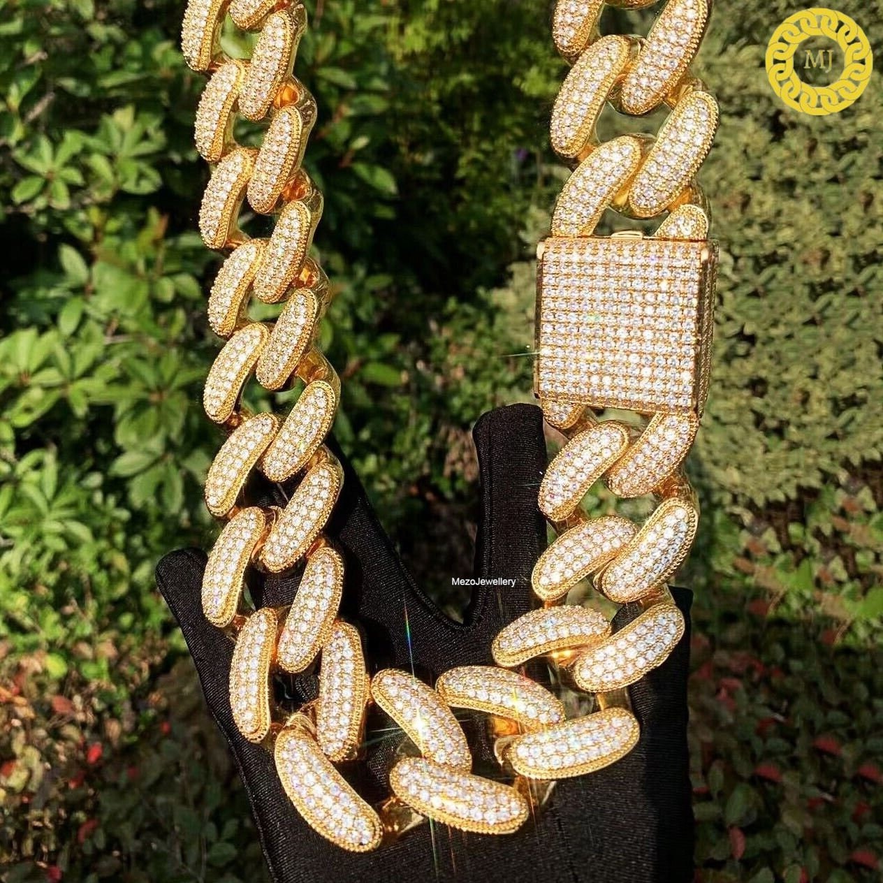 Heavy Solid 925 Sterling Silver Men's VVS1 Moissanite Diamonds Studded Cuban Chain,Icedout Rapper chains,40mm wide, Icy Quality Box Clasp