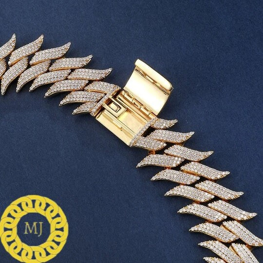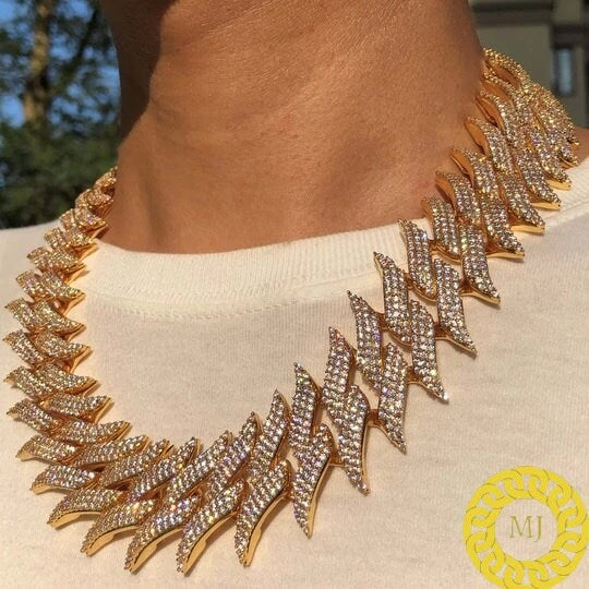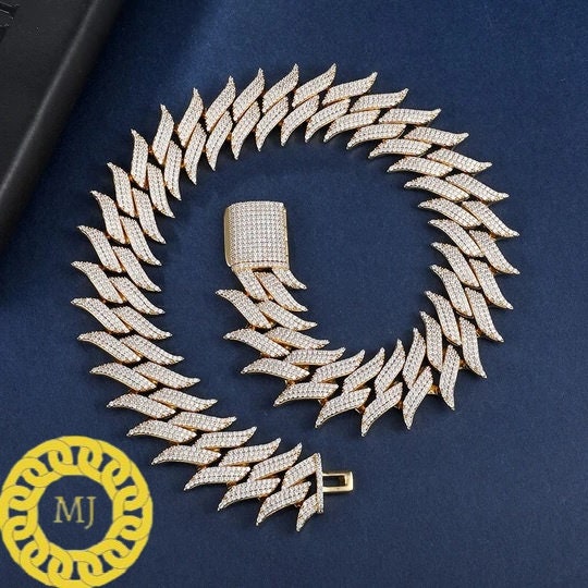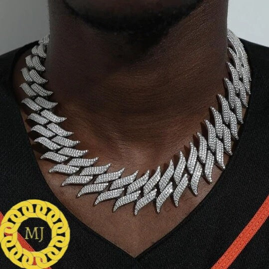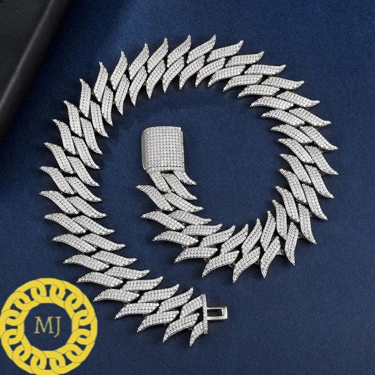 Heavy Solid 925 Sterling Silver Men's VVS1 Moissanite Diamonds Studded spiked Cuban Chain,Icedout Rapper chains,30mm wide, Quality Box Clasp