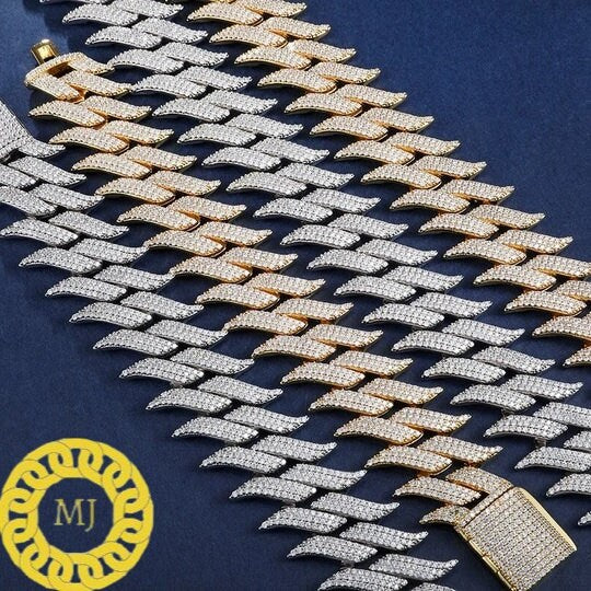 Heavy Solid 925 Sterling Silver Men's VVS1 Moissanite Diamonds Miami Cuban Curb Chain Anti-Tarnish 30 mm wide 16"-28" Inch" All Sizes ( Available Message For Size And MM sizes Price will Vary ) Fine Quality Box Lock Clasp, Moissanite studed Pass The Diamond Tester Test