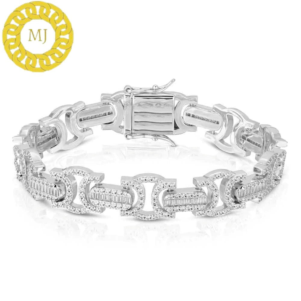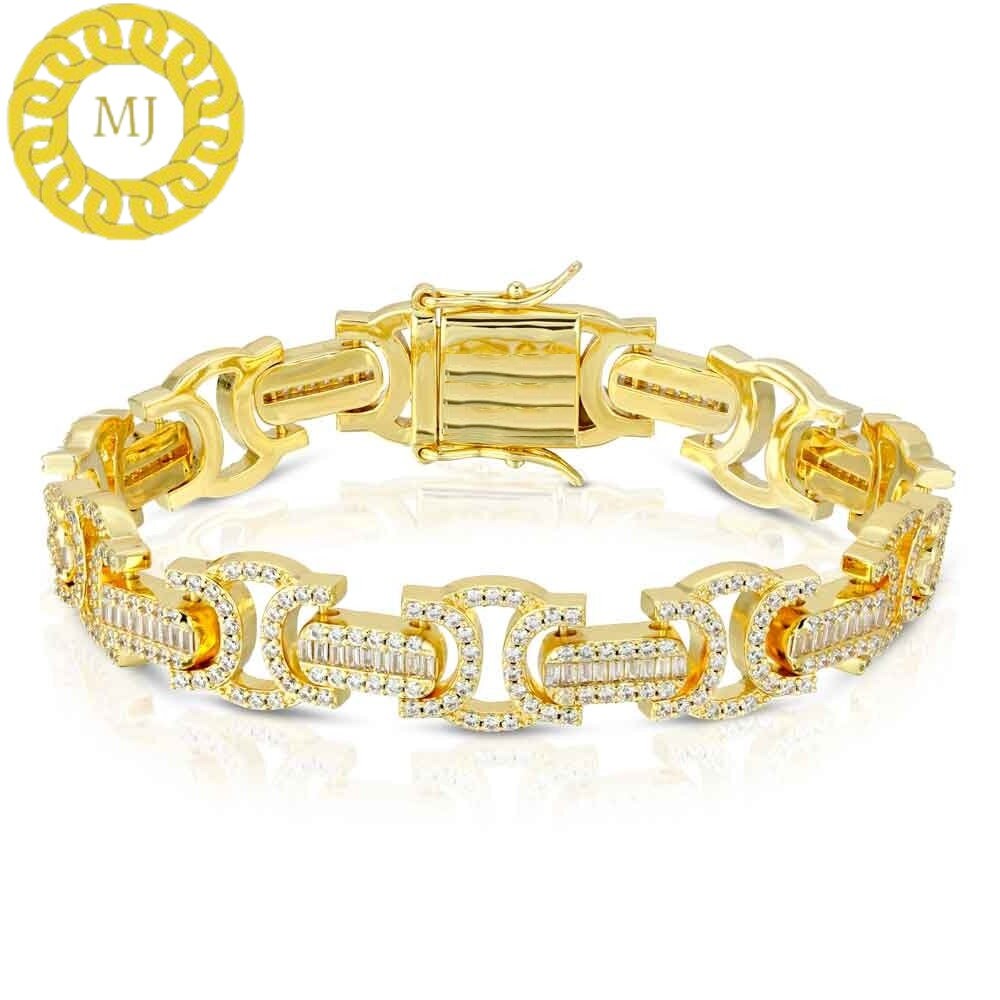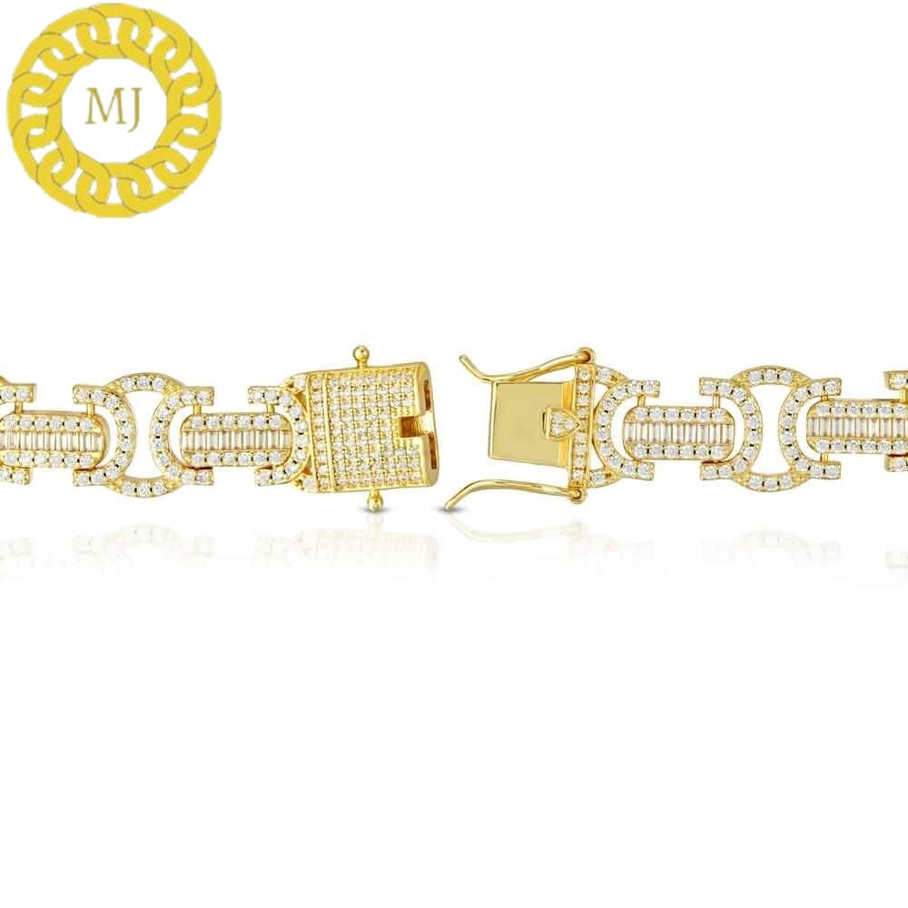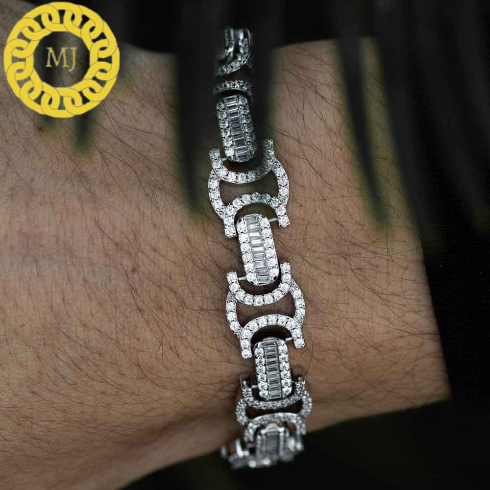 Heavy Solid 925 Sterling Silver | VVS1 Moissanite Diamonds Studded 15 mm flat Byzantine Bracelet | 18k Gold plated Iced Out Bracelet