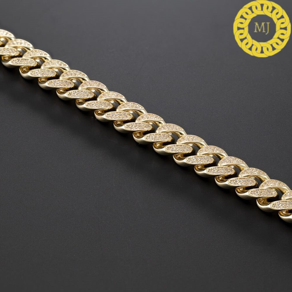 Heavy Solid 925 Sterling Silver | VVS1 Moissanite Diamonds Studded |Curb Bracelet-12 mm wide 6-9 Inch" | 18k Gold plated Iced Out Bracelet