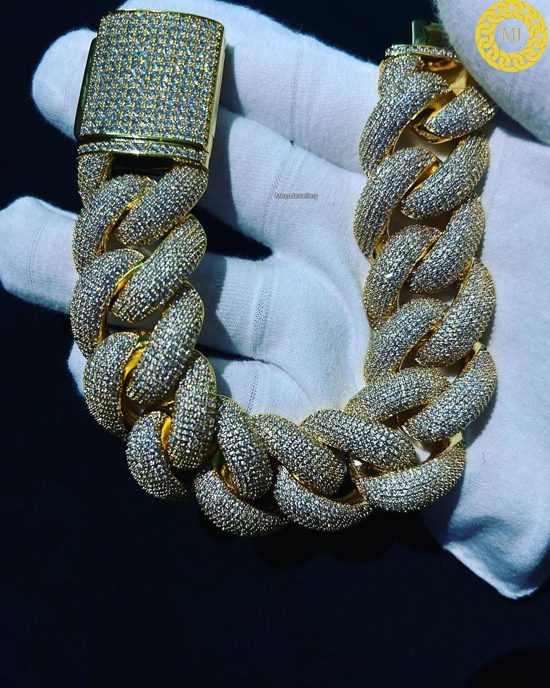 Heavy Solid 925 Sterling Silver | VVS1 Moissanite Diamonds Studded |Curb Bracelet-22mmwide 6-9 Inch" | 18k Gold plated Iced Out Bracelet